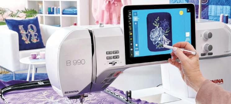 Withitsvastsewingspace,largepreview screen,andgiantembroideryhoop,the BERNINA990 turnsyourquilting,sewing, andembroiderywishesinto creativemagic.