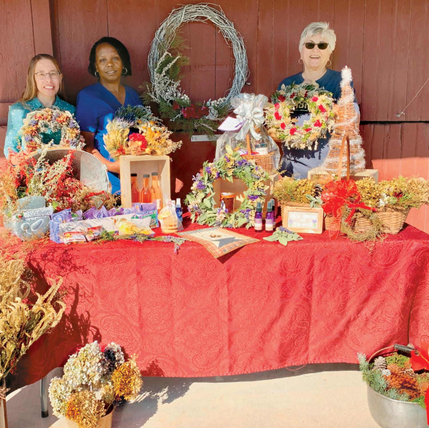 hydrangea, and other natural items to make decorative baskets and other pieces with seasonal flair. Sachets, vinegars, and lavender mist will be displayed for sale, and gift baskets, snowmen, and more holiday-themed treasures will be sold.