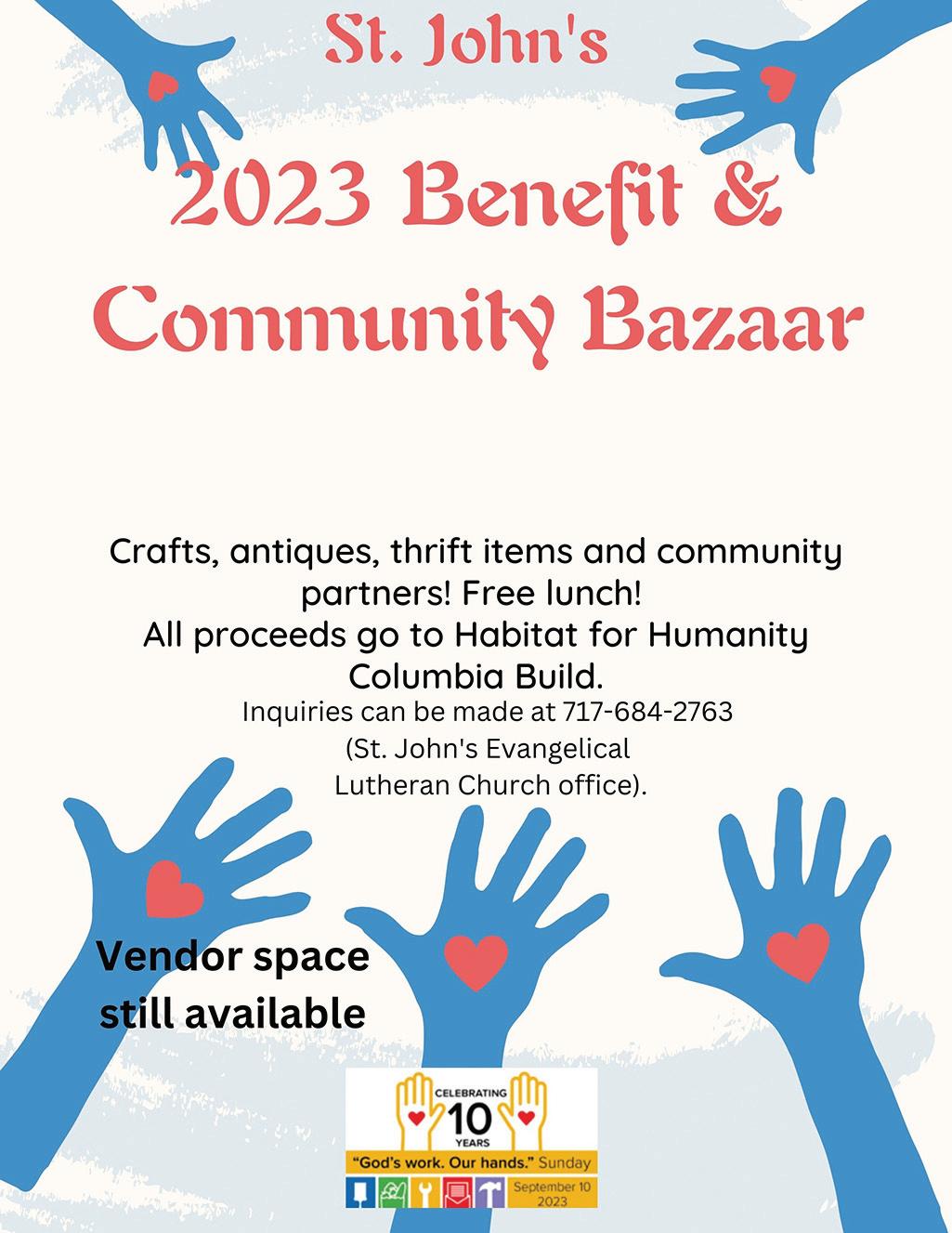 also be for sale, along with chicken corn soup, hot dogs, barbecue and drinks. The soup will be prepared by the chef at St. John’s Herr Estate and will be available to purchase by the bowl or quart for eat-in or takeout.