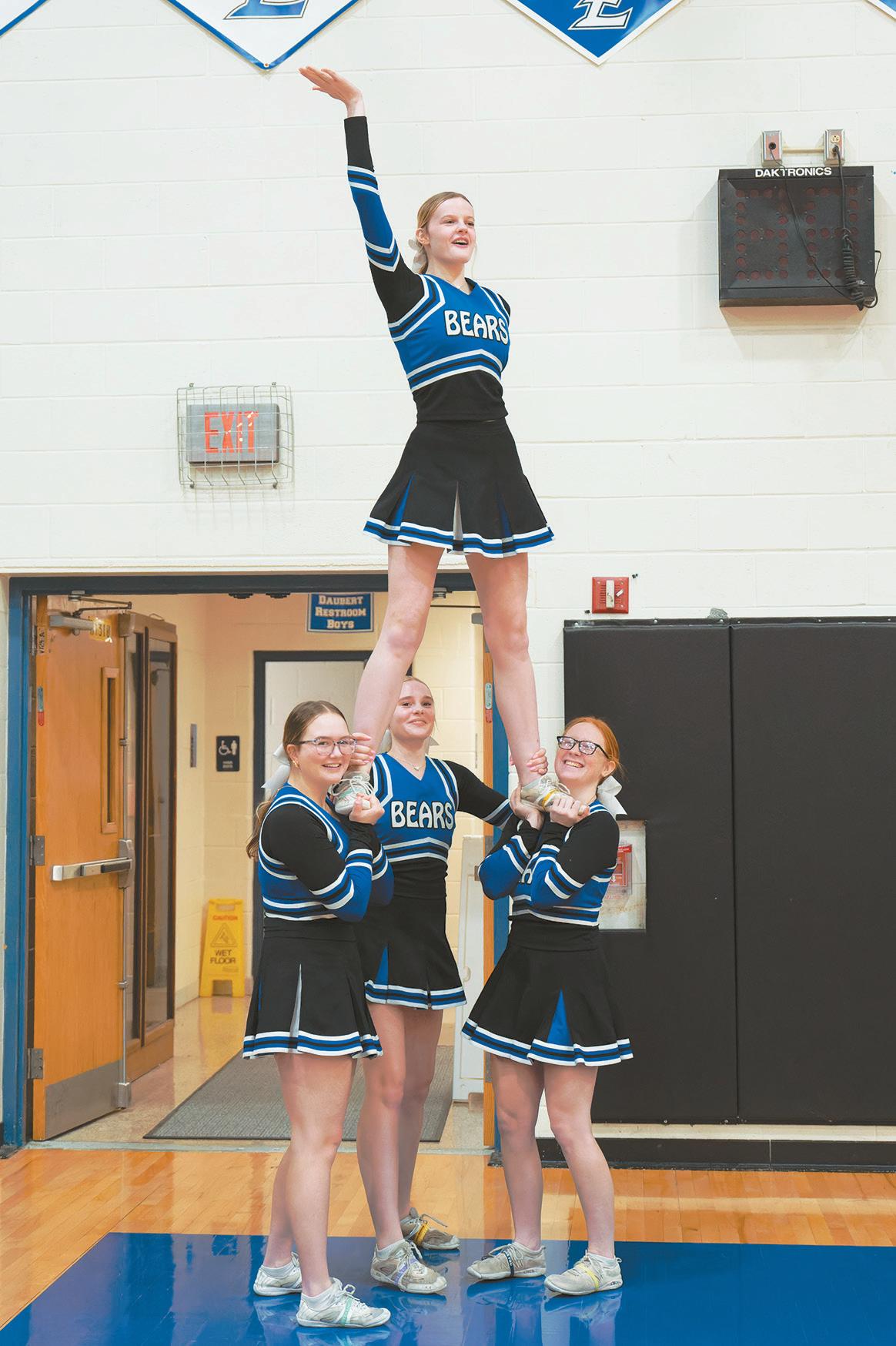 The Elizabethtown cheerleaders perform during a timeout against Cocalico in a 50-15 loss on Thursday, February 5.