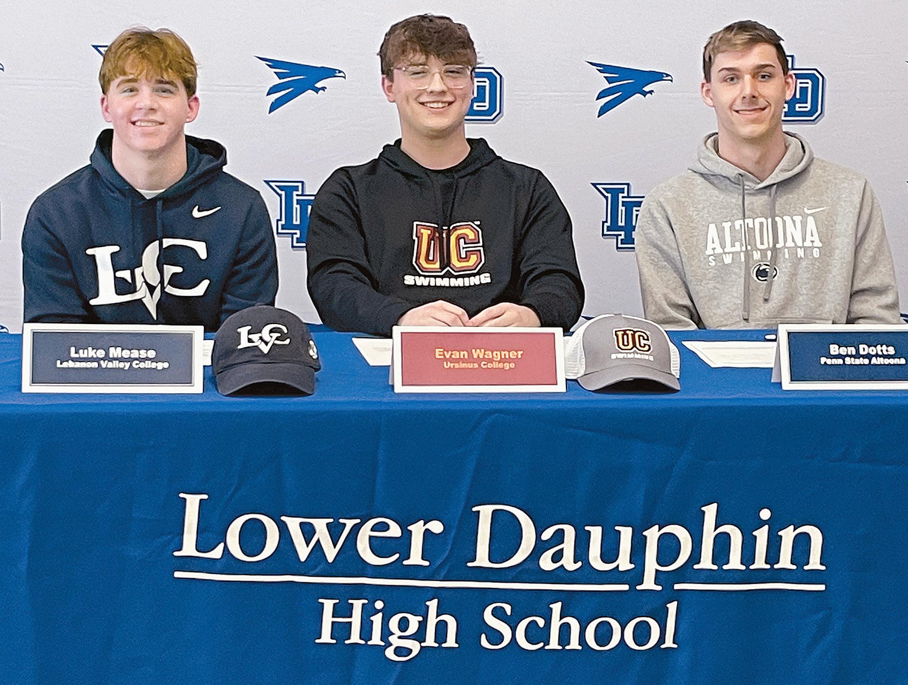 Three Lower Dauphin High School seniors announced their college decisions at a signing ceremony on Feb. 14 in the school cafeteria. They were surrounded by family members, coaches, staff members, teammates and friends as they signed letters stating their intention to continue their academic and athletic careers at the next level.