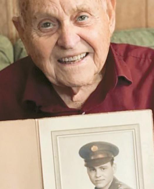 Bud Gahs displays a portrait that was taken when he served in World War II.