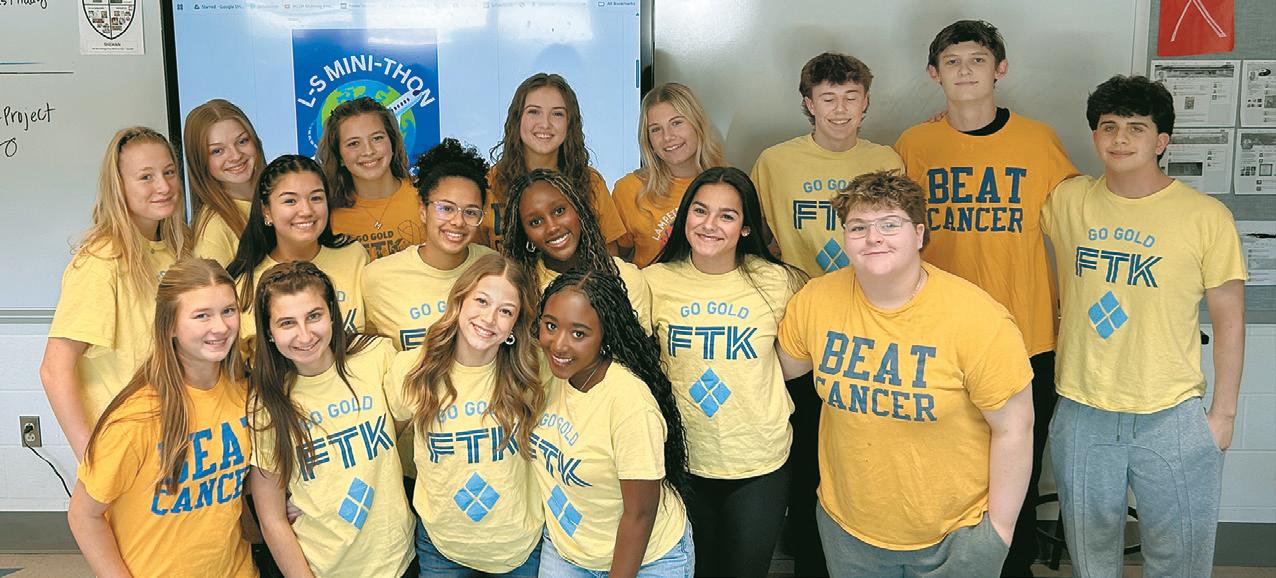 L-S Mini-THON executive team members are (front, from left) Elaina Strange, Sofia Giamba, Ainsli Goodrich, Annie Kirumba, (second row) Reese Showvaker, Gabi Nonthankan, Brianna Jackson, Sigey Bett, Kiki Rey, Georgia Spahn, (back) Kendall Hoover, Madelyn Lawler, Addie Snader, Payton Laub, Jonathan Menapace, Carter Peters, and Luca Caruso.
