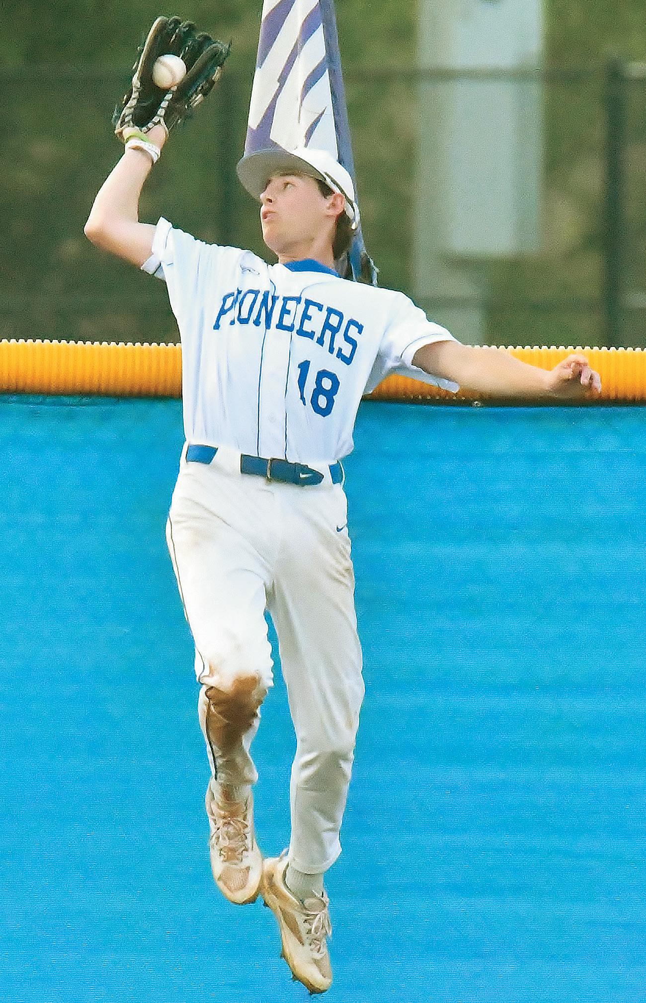 Centerfielder Kyler Branco goes up for a key catch in Lampeter-Strasburg’s 4-3 thriller against CV on senior night, Monday, May 6.