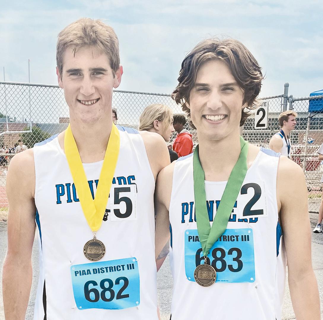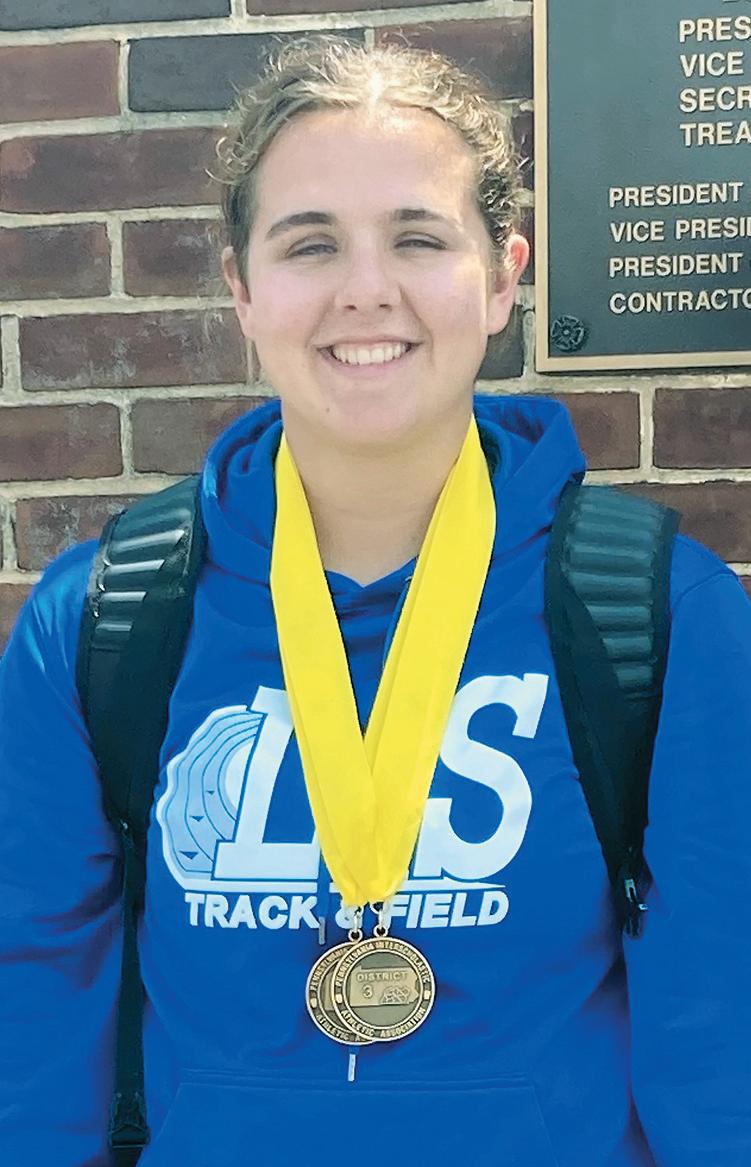 Also grabbing two medals was Maggie Swarr. The senior thrower tossed the shot put a personal best 38-0.25 on her final attempt and moved into fourth place on Friday. She was the top L-L League place-winner. Saturday, she competed in the javelin (124-11) and settled for another fourthplace effort, holding off Palmyra’s Sofie Price by two inches.