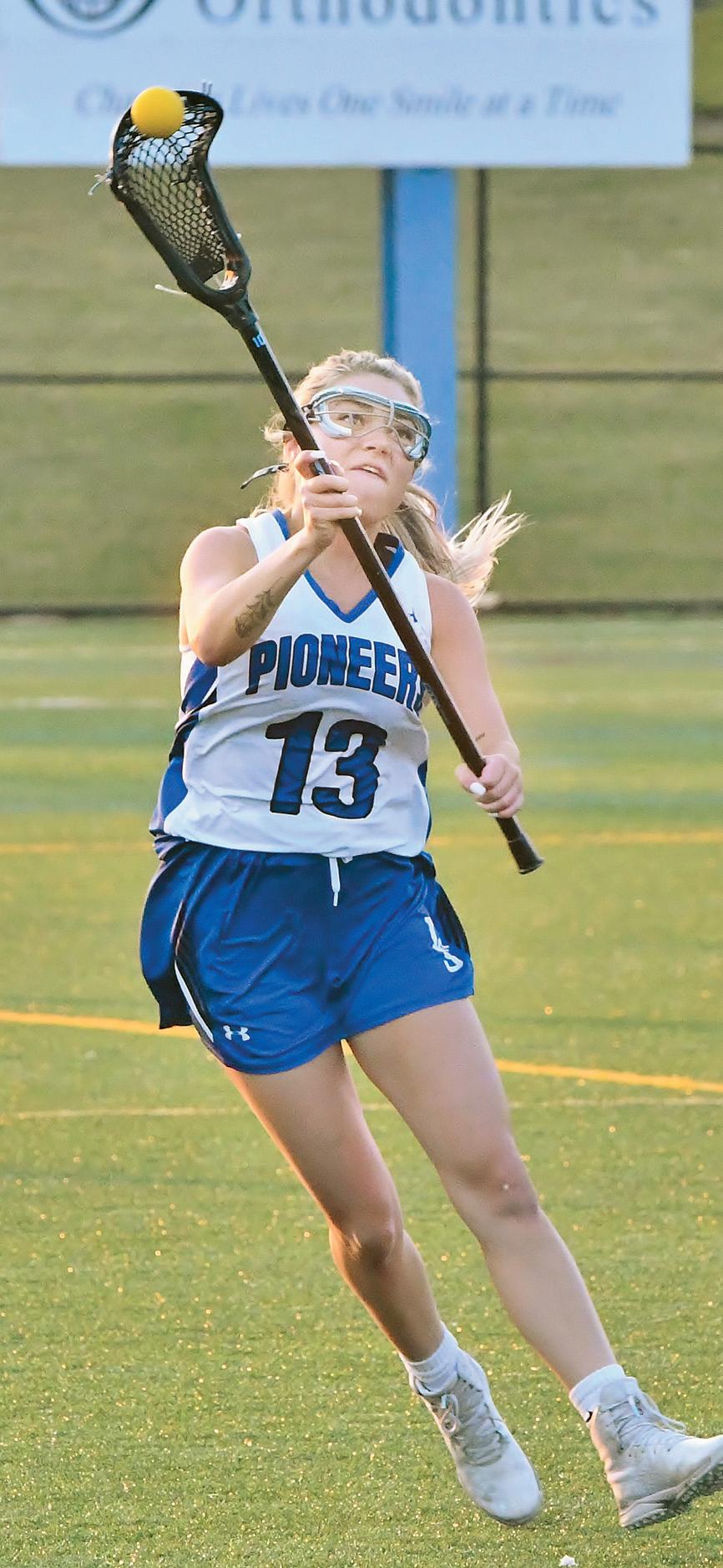 The Pioneers got off to a slow start, leaving Township with a quick 4-0 advantage but settled in after that and managed to cut the lead to 75 after scoring the final three goals of the half. Hannah Cissne sparked the rally with a low, reverse goal, Rowan Kimmel assisted Bethany Stoltzfus and then scored her only goal of the game.