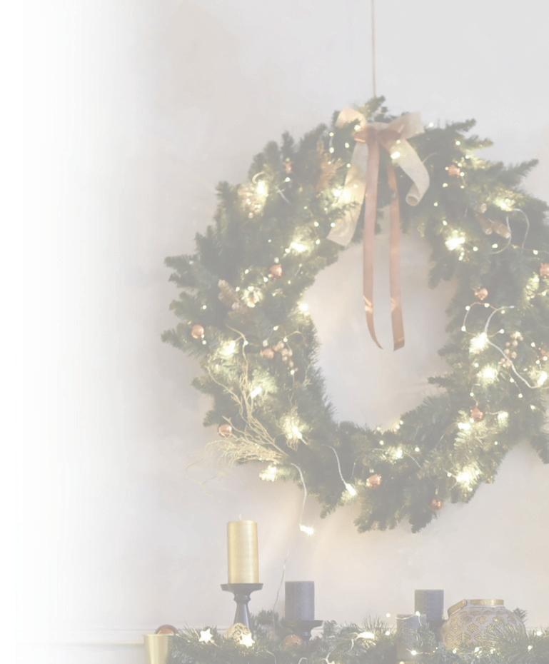 Start by finding a decor focal point. Identify the property’s most attractive features - a porch, the front door, some shrubs or a perfect treeand focus attention there with garlands, greenery and lights.