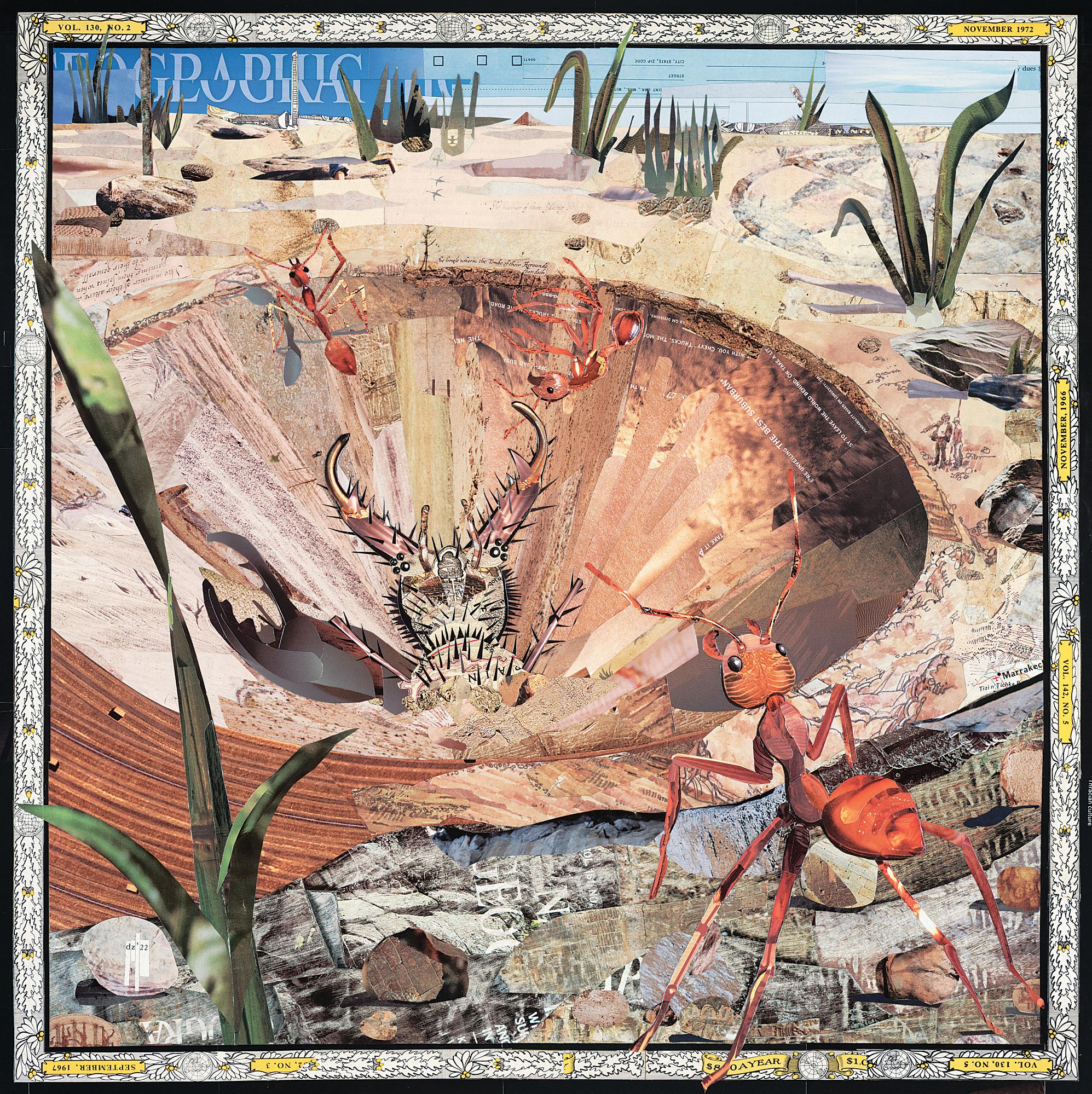 copies of National Geographic Magazine. Zdilla deconstructed the original found imagery into scraps and bits of formal elements such as color, value and texture and then reassembled these elements into new images.