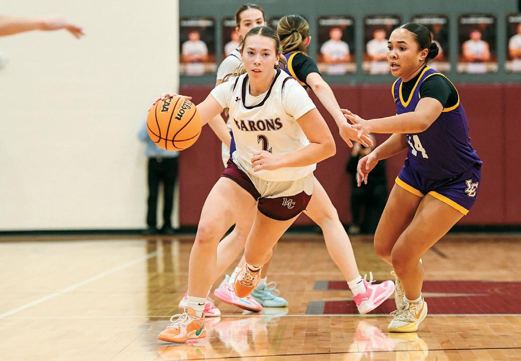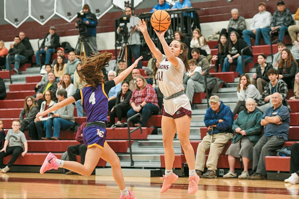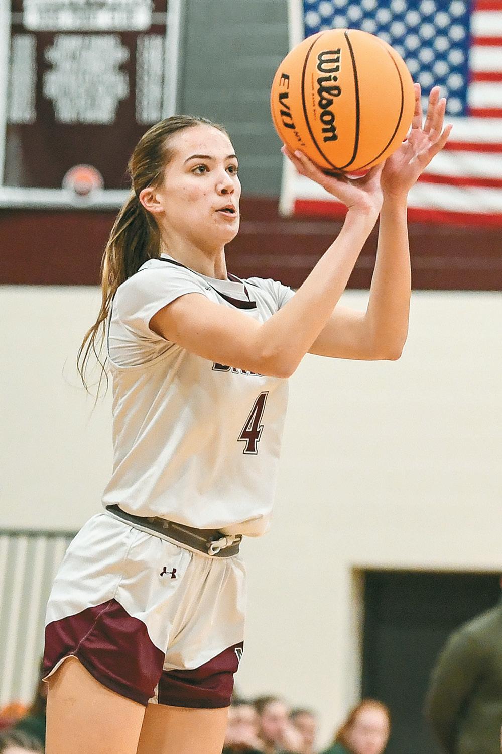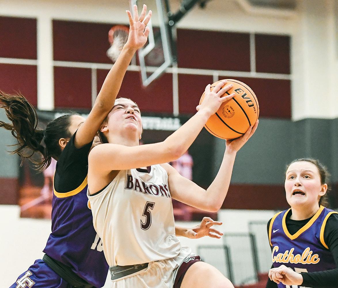 The Barons’ Madelyn Gehman pops a three-pointer against Lancaster Catholic during a tough 38-35 loss on Thursday, January 15, in Manheim. Gehman had 7 points.