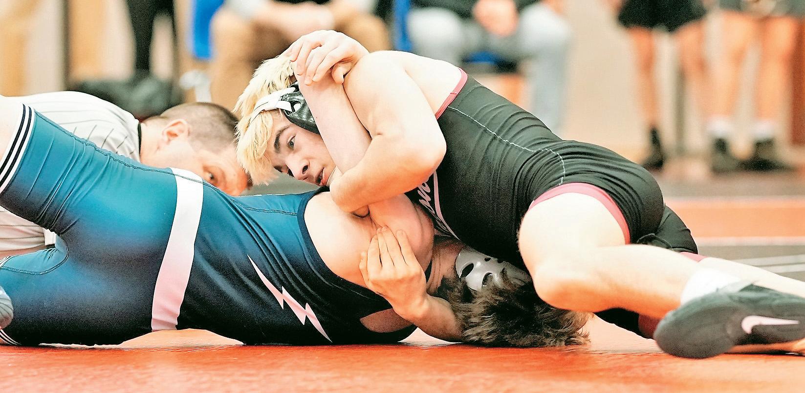 Justin Over for a first-period (1:58) fall in a 127pound, opening-round bout in the District Three, AAA Section 2 championships at Hempfield on February 18.