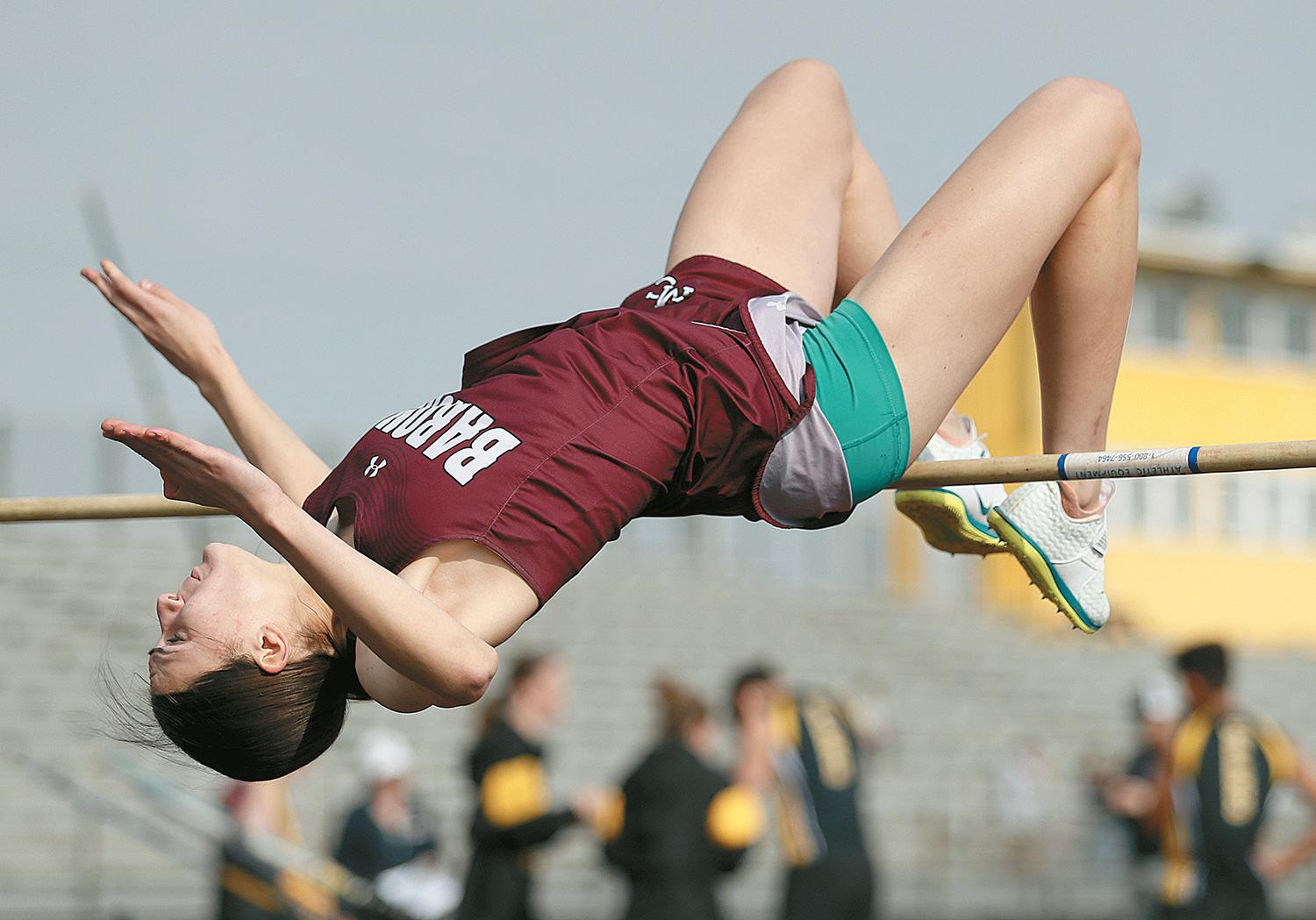 Central’s Ryan Kosydar hands the baton to Jackson Sargent in the 4x400 relay against Solanco on Monday, April 14. The Barons won in 3:33.4.