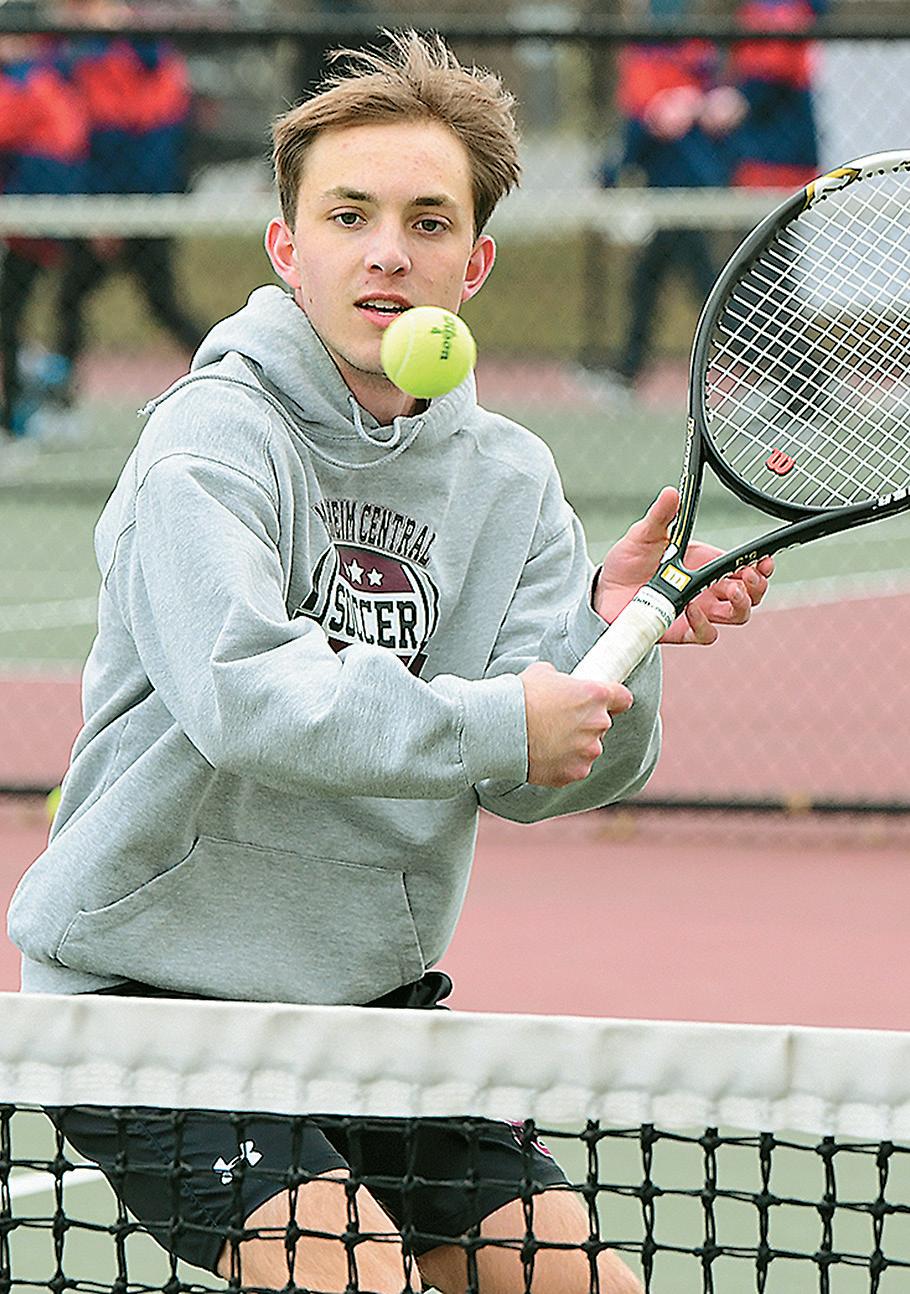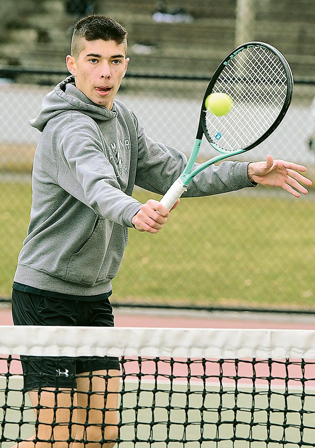 Playing No. 1 doubles in the Barons’ 5-2 triumph over Lampeter-Strasburg on Wednesday, April 16, Asher Boer and Aaron Cassel earned an 8-1 win over the Pioneers’ Anderson Lawrence and Alexander Gouger.