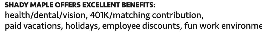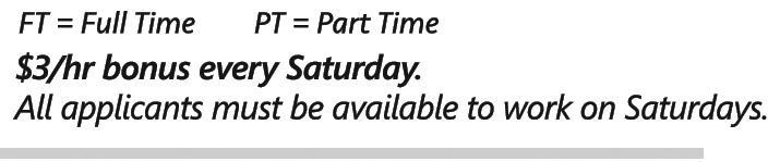 Housekeeper FT Salad/Dessert FT Customer Service FT Host/Cashier PT Saturday Only Positions R098138 R098160 EOE