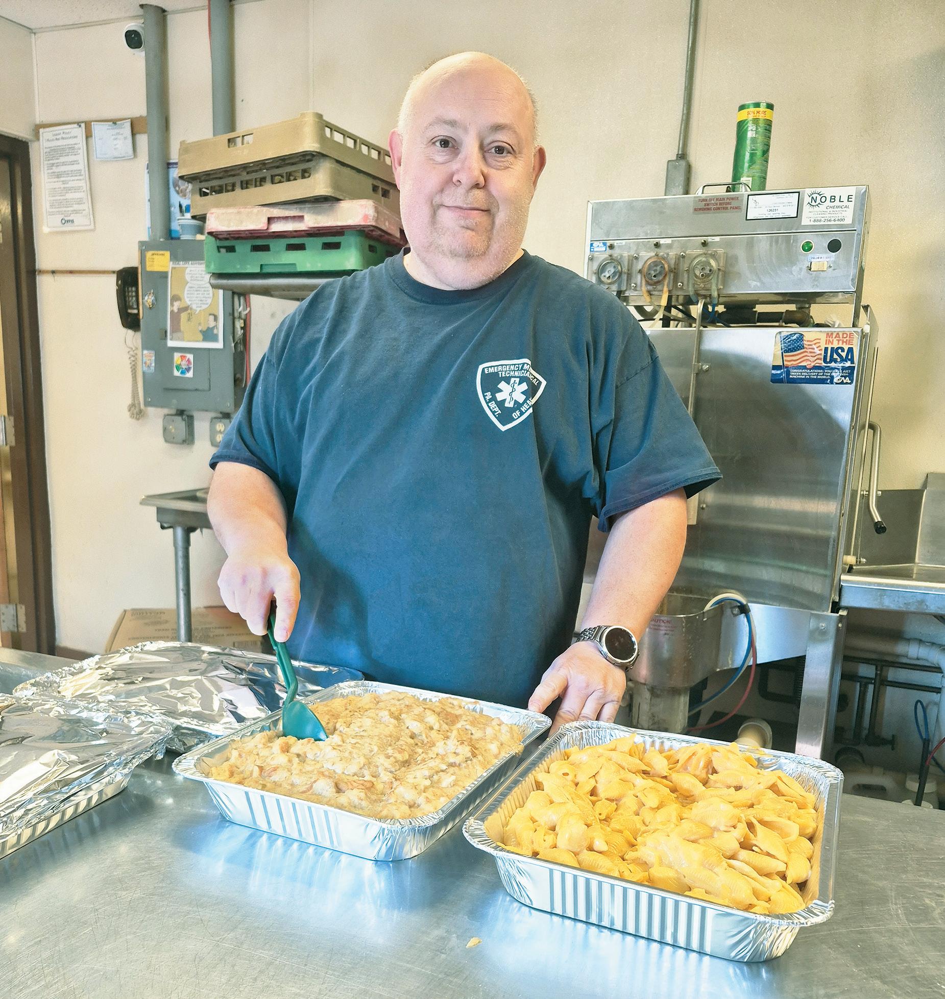 Dinners are prepared in the fire company’s kitchen by volunteers, including Wayne Steele, training officer, who noted that guests are welcome to dine in at the fire