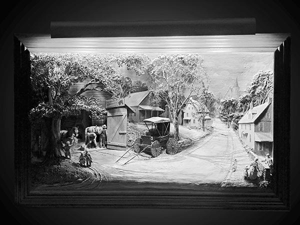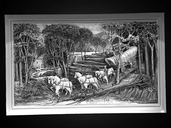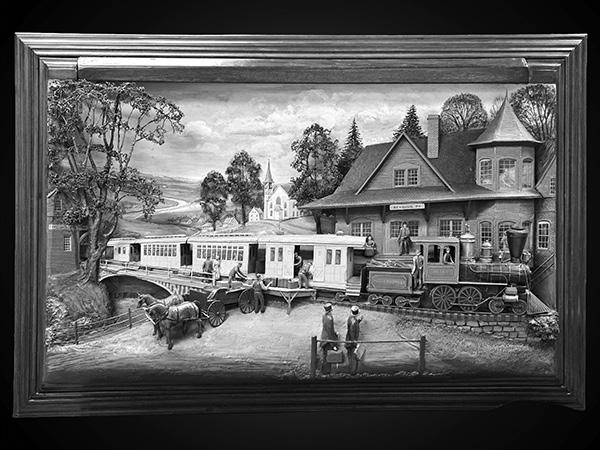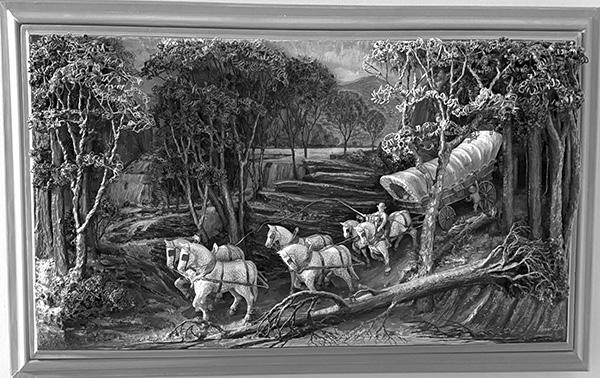 Featured Artists & Notable Works: Aaron Zook: The Last Supper, 1988. Four-Season Round Relief Set. Abner Zook: Gone Fishing, 1971. Harvest Time, 1988. Barn Raising, 1975. Interstate Covered Wagon, 1975.Ferrier, 1984. Joel Zook (Cousin to Aaron & Abner Zook): A collection of handcrafted wooden models. Dan Zook (Nephew to Aaron & Abner Zook): “Make A Wish” Truck Convoy. Steam Locomotive Passing Farmers. Beautiful Belgians. Dan Esh: Countryside Landscape, 2002. Moonlit Countryside. Also including works by Alice M. Weaver.