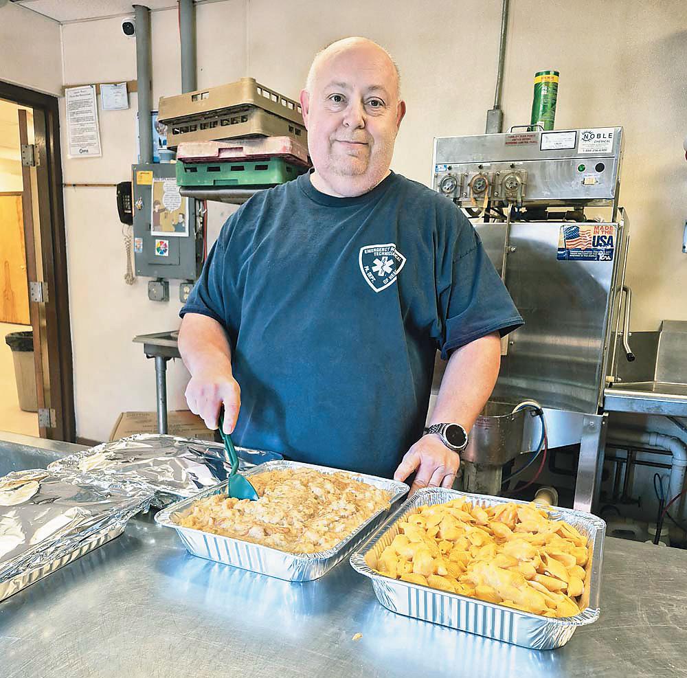 Dinners are prepared in the fire company’s kitchen by volunteers, including Wayne Steele, training officer, who noted that guests are welcome to dine in at the fire company. Takeouts will also be offered.