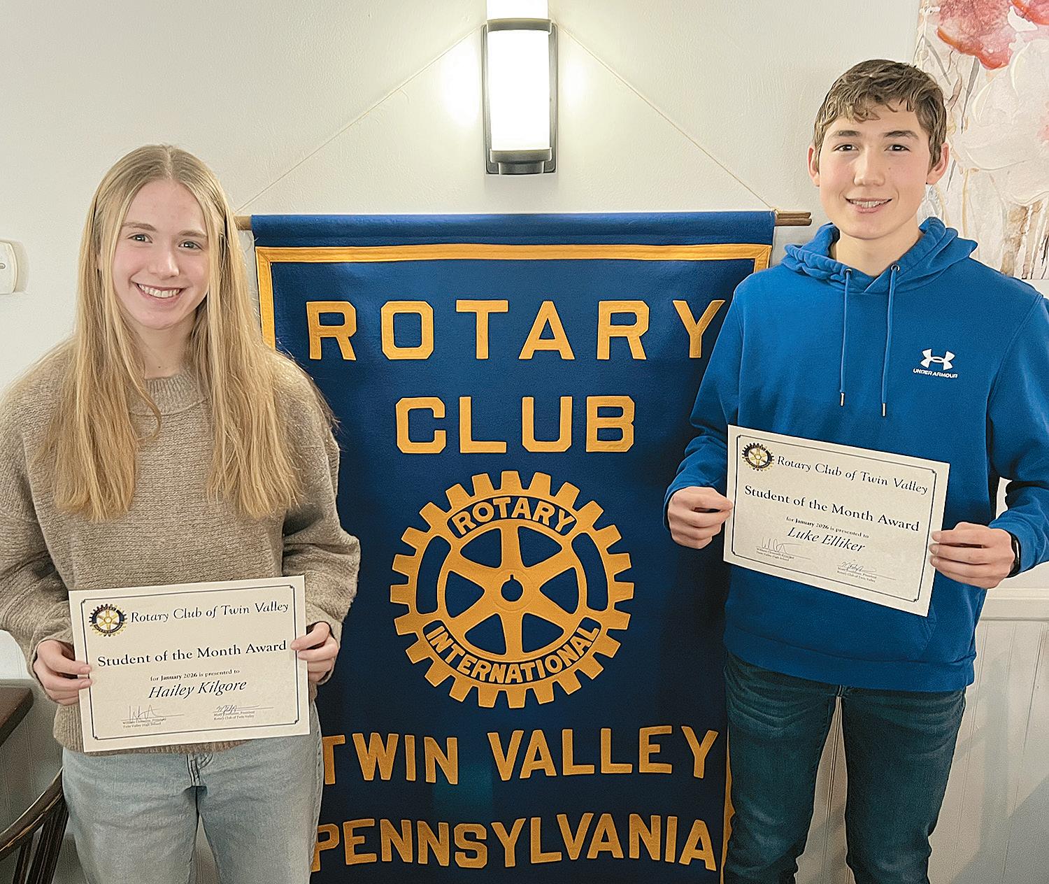 The Twin Valley Rotary Club has selected Twin Valley High School (TVHS) students Hailey Kilgore and Luke Elliker as its Students of the Month for January.