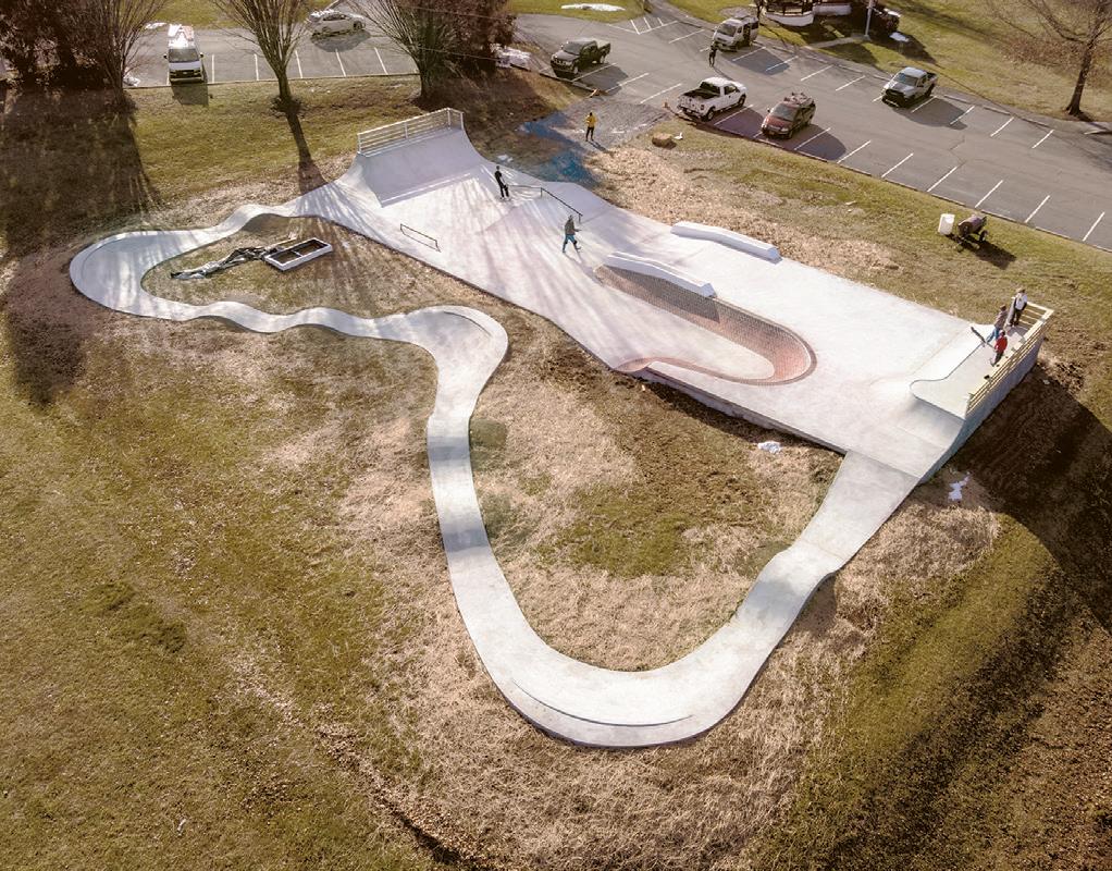 The park features a concrete pump track, quarter pipes, grinding rails and a pyramid. Horrocks said that the skatepark was designed to be family-friendly and comfortable for both beginner and intermediate-level boarders.