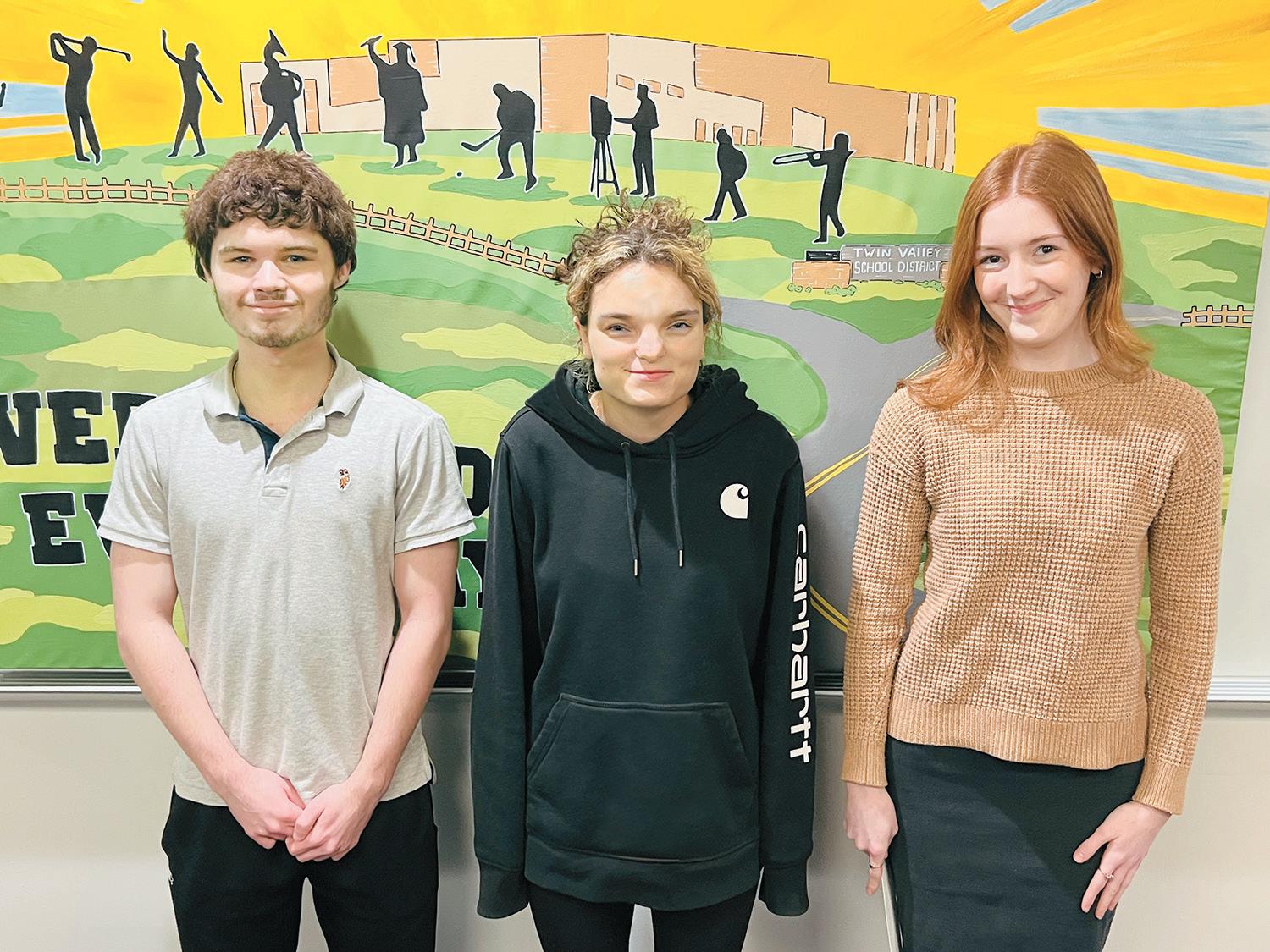 Twin Valley High School seniors (from left) James Kochman, Sofia Carrera and Sloane Wolfe recently represented their school in the Rotary Club of Twin Valley’s annual speech contest. As the winner, Sloane now advances to the semifinals of Rotary District 7450’s Roger Taylor Speech Contest.