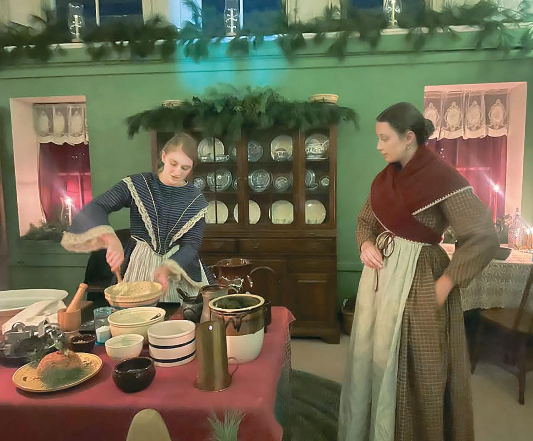 games and reminiscing about past Christmases by the fireplace. Guests are invited to interact with family members to learn more about the family and life in the iron furnace community.