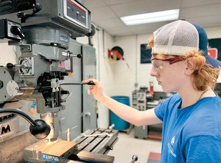 Brayden Heister of Donegal High School operates a machine at the LCCTC’s Mount Joy campus. Photo by George Deibel