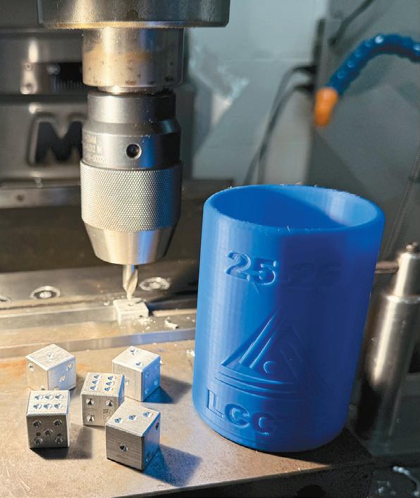 Intro to manufacturing students made dice and a “Yahtzee cup.”