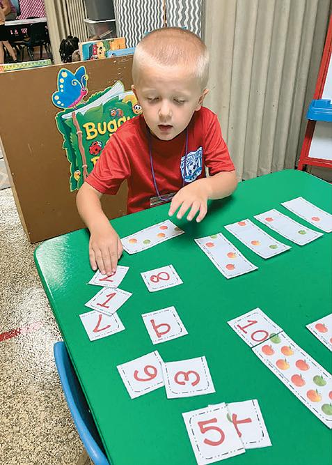 A student from the prekindergarten 4- and 5-year-old class plays a number matching game.