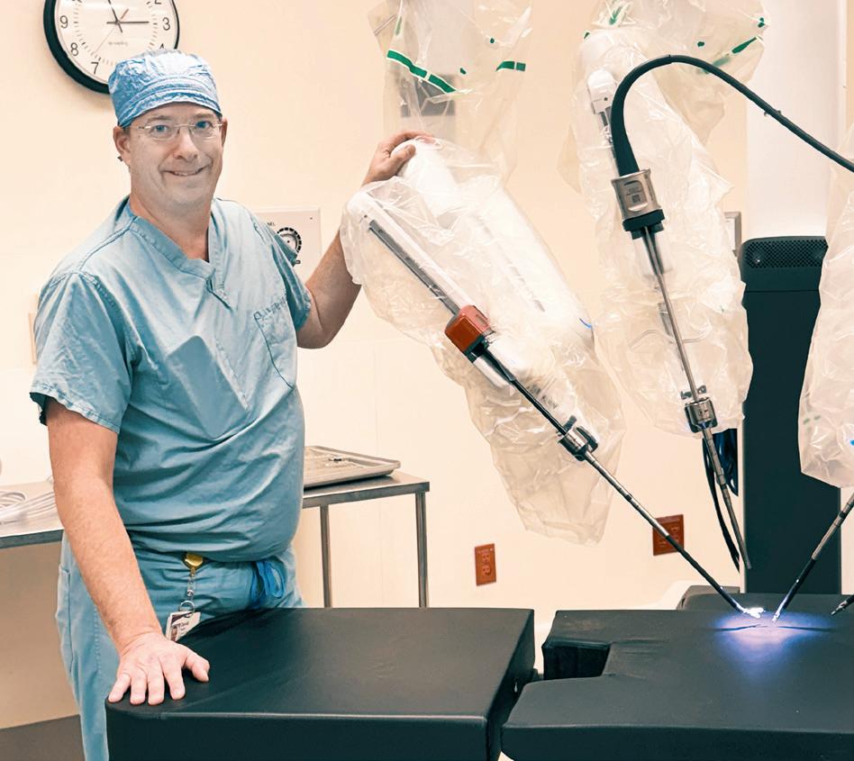 inflate it so we have space to work. It’s like having mini wrists inside the abdomen. Robotic surgery gives surgeons four arms instead of two.”