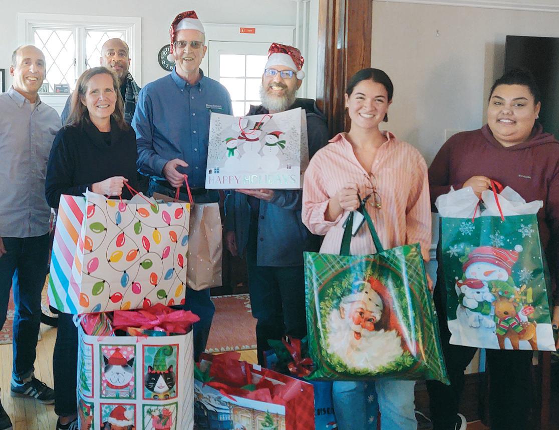 Daniel J. Machon Jr. (fourth from left) and Mark Pizzi (third from right) deliver gifts to Family Service of Chester County.