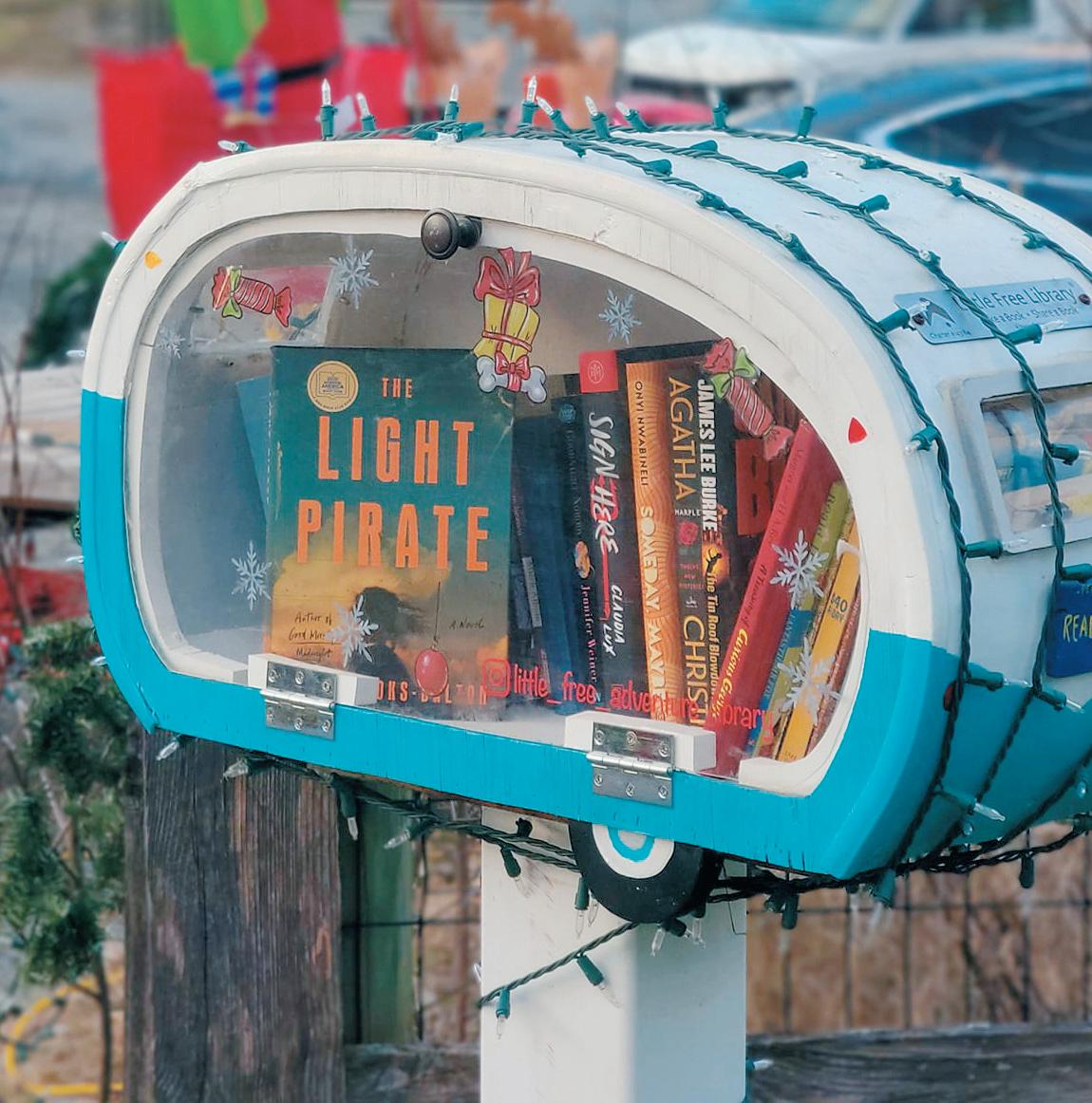 The LFL structure was created by Jess and her husband, Dan, who is a carpenter. Unlike other book-sharing boxes, the LFL at the Steck home is shaped like a vintage travel trailer. “We have done a lot of traveling with our RV, so we shaped it like a vintage trailer,” said Jess. “(Dan) built it, and I did all the painting.”