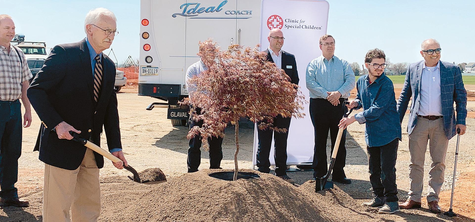 On April 4, the sun shone brightly over the tent set up at the site along Hatville Road in Intercourse where the new Clinic for Special Children (CSC) will be built. Herman Bontrager, board chair of CSC and chair of the Keeping the Promise: Building Hope Capital Campaign, welcomed the gathering, noting, “We have a perfect day.” The groundbreaking and tree planting that occurred on the site not only celebrated the new building, but also commemorated the founding of CSC by Dr. Holmes Morton and his wife, Caroline, 34 years ago. “They had the vision and courage to establish a clinic to serve children with genetically transmitted diseases here in Lancaster County,” said Bontrager, who noted that the new building will help more families, allow for the innovation of new therapies, and be