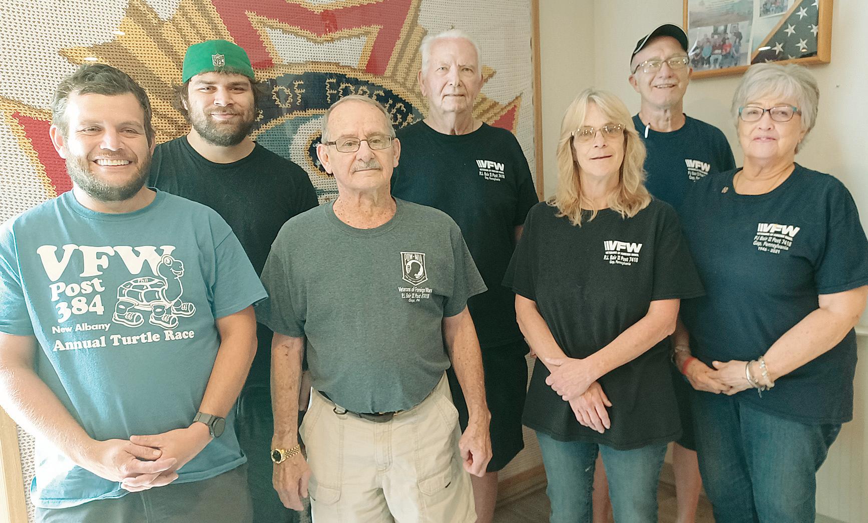 Members of the Gap VFW include (back, from left) cook Chris Leivers Jr., quartermaster Bob Charlesen, adjutant Lee Reynolds, (front) trustee Scott Barrage, chaplain Herb Buzzard, steward Lucinda Fisher and auxiliary president Cheryl Charlesen.