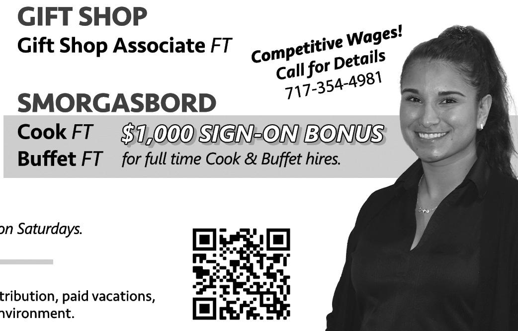 (Choose which date to come.) Doors Open @ 5:00pm Fellowsh ip Meal @ 5:30pm Shady Maple Banquet Hall 129 Toddy Drive East Earl, PA 17519 Special Guest Speaker: BRENT HENDERSON Restart Trai ning Center Ministry’s 8th Annual Sportsman Dinner Sponsorship Brent is nationwide speaker, published author, professional outdoorsman, John Maxwell certified life coach, ordained pastor, and a national recording artist. SPONSORED SPONSORED IN PART: R092075 8th Annual Sportsman Dinner Fundraiser DINNER WILL INCLUDE: Door prizes, auction items, & Restart Ticket Prize items from local businesses A free-will offering will be taken to help with the mission of Restart Training Center Ministry, Inc. Individual Ticket Costs: $45 per ticket (by February 28, 2023) $55 per ticket (after February 28, 2023) To reserve your seat or be a door prize sponsor contact Pam Santiago, Office Manager, at (717) 304-3291 or officemanager@restartministry.org. Please purchase your tickets by February 28, 2023 OR until SOLD OUT to reserve your seat. Tickets will go on sale to the general public on January 1, 2023. Proceeds Benefit: Adult Gran d Prize: Matthews Bow —2023 Newe st Model (18 & older) Children’s Grand Prize: Wicked Ridg e Raider 400 De-Cock (17 & under) “Loving People To Spiritual Renewal” estart Training Center Ministry, Inc. Testimonies from 2022 Sportsman Dinner Attendees “It was very well organized!” — Rachel F. “Great speaker with great message. All honor and glory to God.” — John B. “May God bless the ministry. Thank you for the time and effort Restart put into this event. I enjoyed it!” — Sylvia H. “I loved the way the Holy Spirit was here tonight. Praise the Father. His Power is so amazing!” — David E. “We really enjoyed the evening! Thanks for sharing your story!” — Kathryn S. “Great food and message!” — Phil S. “I like to see God and Jesus’ name brought forth and held up like I did tonight… seeing God through nature.” — Wayne H. F OR MORE INFO, PLEASE VISIT WWW.RESTARTMI NISTRY. ORG. R092070 GOLD BUYING WE MAKE HOUSECALLS! ANY CONDITION (717) 587-7487 Buying: Gold • Sterling Costume Jewelry • Vintage Watches R092060 COMMUNITY CPR CLASS Held at the White Horse Fire Co. Saturday, Febr uar y 18th February 18th Morning Class: 8-11 AM • Afternoon Class: 12-3 PM To register, call Alvin Stoltzfus from White Horse Ambulance at 717-468-8005 Registration Deadline: February 11th CPR C di A Victims CPR Cardiac Arrest Victims Lose 10% urviving! Lose 10% Chance of Surviving! E EARLY CPR LIVES!!! R091895 COMMUNITY HYMN SING Sunday, January 29th, 2023 7:00 p.m. Song Leaders: Bob Meck, Don Sensenig & Jim Horst 2813 Stumptown Rd, Bird-In-Hand, PA 17505 717-656-7878 R091538 www.goformulafitness.com 2495 Lincoln Hwy. E., Lancaster, PA 17602 (717) 291-5959 Includes: Classes • Workout Facility • Tanning • Sauna Open from Mon.-Thurs. 4am-11pm, Fri. 4am-10pm Sat. 8am-8pm, Sun. 10am-6pm *Linked to an active credit card or checking or savings acct. $39 annual administration fee on 3/5/23. Exp. 1/31/23 $9 ENROLLMENT FEE & $191999 99 /Mo. OffHurry er EndsTuesday 1/31/23 LOCAL BUSINESS DIRECTORY