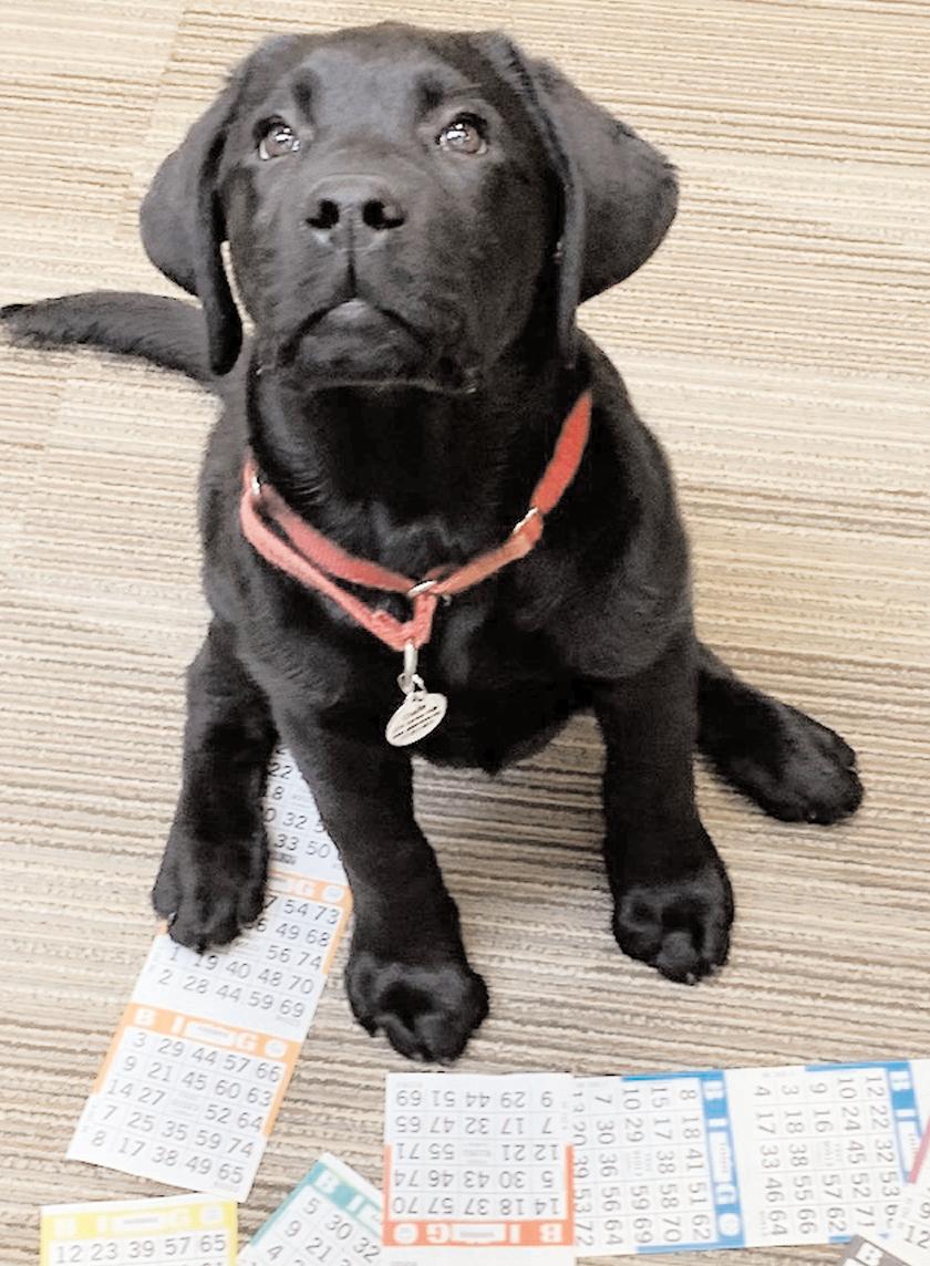 UDS service dogs are perhaps best known for helping individuals with mobility issues or autism. These dogs train for more than two years before they are partnered with an individual for whom they may open and close doors, retrieve objects, and more. Charlie, the black Labrador puppy that posed cooperatively with bingo cards for this article, began his training at 11 weeks. “Normally puppies start our program at 8 weeks,” said Breece, who noted that in spite of starting a little late, the pup is doing well. “(Charlie) has been a shining star,” she stated.