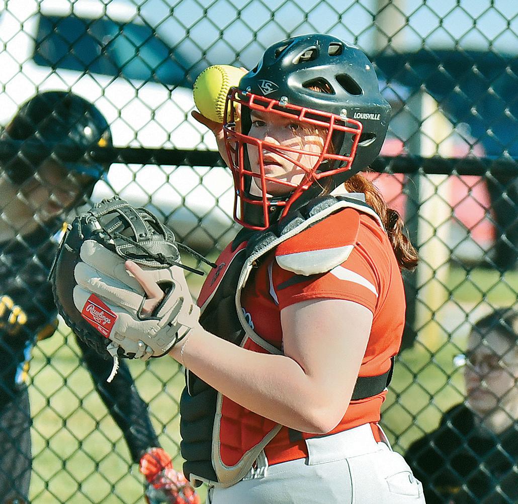Pequea Valley’s Sydney Royc covers the plate, as Ava Martin of Solanco slides in safely with a run. When the dust settled, the Braves found themselves on the wrong end of an 18-0 final score.