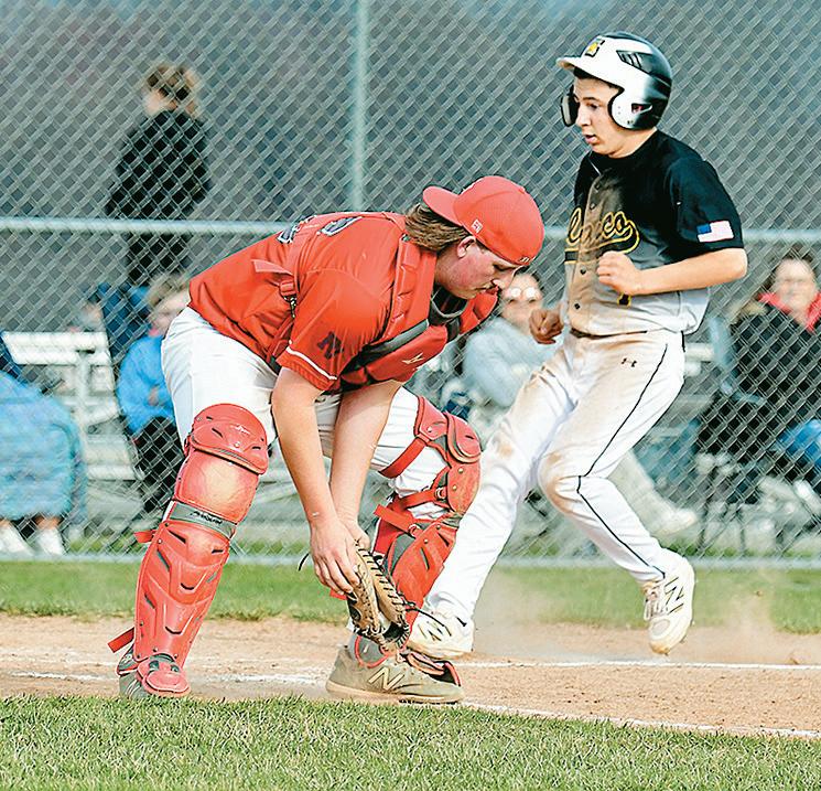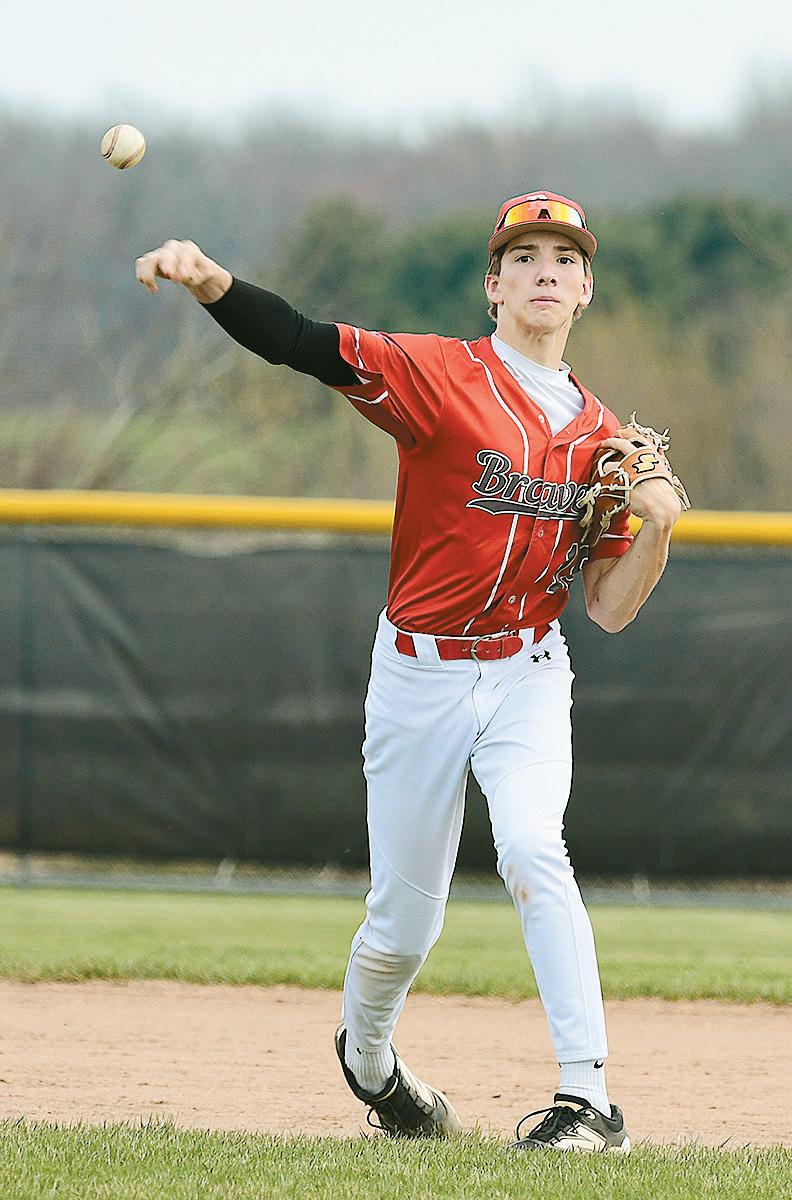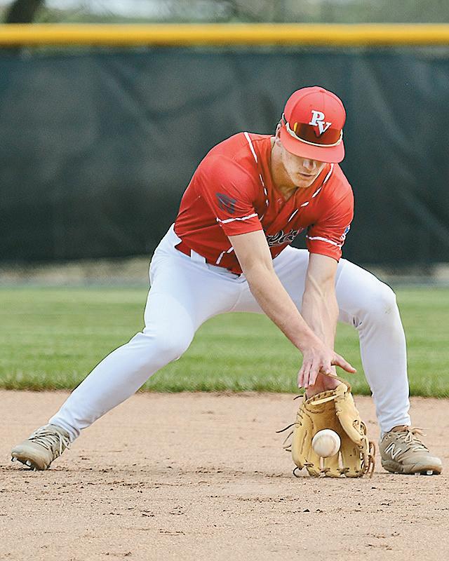 In Quarryville, Pequea Valley’s shortstop Sammy Chappell fields the grounder and throws the Solanco runner out at