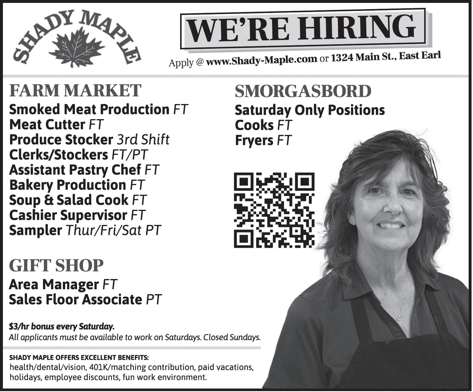 townlively.com Pennysaver - Pequea Valley Edition - May 22, 2024 - 11 R106706 Bird-In-Hand Builders Help Wanted Full-Time Driver/Worker 717-587-4294, ask for Raymond To drive crews to job site and help work. R089781 5004 Horseshoe Pike Honey Brook, PA 19344 610-273-3724 Mon.-Fri. 6am-6pm, Sat. 7am-3pm • Chain Saws • Trimmers • Blowers • Pressure Washers/Sprayers • Hedge Trimmers • Lawn Mowers • Snow Blowers honeybrookhardware.com Small Engine Service & Repair R106065 Eastwood Village Homes LLC Open House Model Homes with Garages Available to Inspect! 453 Eastwood Lane, Lancaster, PA 17601 (717) 397-3138 www.eastwoodvillagehomes.com DIRECTIONS: Take Route 30 East to Greenfield Road. Turn right onto Greenfield Road. Continue past the entrance of Villages at Greenfield. Turn right onto Ben Franklin Blvd. Go over bridge and follow signs to model homes. New Homes For Sale - First Floor Living Villages at Greenfield Manufactured Housing Lot Rent Community Friday, May 24th • 1pm-4pm R107076 Retail Building for Rent 2050 sq. feet • Lower level storage Oil & electric heat • Air conditioning 2707 Old Philadelphia Pike (Main Street), Bird-in-Hand Call Donna at (717) 768-8272. Retail Building for Rent 2050 sq. feet • Lower level storage Oil & electric heat • Air conditioning 2707 Old Philadelphia Pike (Main Street), Bird-in-Hand Call Donna at (717) 768-8272. Retail Building for Rent 2050 sq. feet • Lower level storage Oil & electric heat • Air conditioning 2707 Old Philadelphia Pike (Main Street), Bird-in-Hand Call Donna at (717) 768-8272. Retail Building for Rent 2050 sq. feet • Lower level storage Oil & electric heat • Air conditioning 2707 Old Philadelphia Pike (Main Street), Bird-in-Hand Call Donna at (717) 768-8272. R106773 HELP WANTED Dienner’s Country Restaurant 2855 Lincoln Highway East Ronks, PA 17572 717-687-9571 x201 • Host/Cashier • Bussers • Dishwasher Full-Time or Part-Time Download an application online www.dienners.com/employment.pnp or stop in or call for an application For Rent ROOMS FOR RENT. Shared kitchen and bathroom. New Holland area. Available 2nd week in May. 717-490-4851. For Sale FOR SALE: CONDO, New Holland, 2bdrm, 2.5 bath 717-354-8943 AUTOMOTIVE AUTOS FOR SALE WANTED: CARS/TRUCKS In Excellent Condition Jeff Gast, 717-575-4561 AUTO PARTS & SUPPLIES $0-$1,000 Always paying cash for junk cars. Prompt, Honest Service. 717-246-2888 PA0002 $100-$5,000 PAID FOR UNWANTED OR JUNK AUTOS Free same day removal. All paperwork taken care of legally. PA licensed & insured. Call anytime 717-989-6980 $300-$1,000 CASH PAID ON ALL VEHICLES Serving York/Lancaster. 717-515-2607 WANTED DEAD OR ALIVE! Cash paid for unwanted cars, trucks. Any condition. Call Brian 717-542-1055 CYCLES CASH PAID: ATVs, ATCs, Golf Carts, Motorcycles, 2/3/4 Wheelers, Any Year, Running Or Not. Call/Txt 610-656-3158