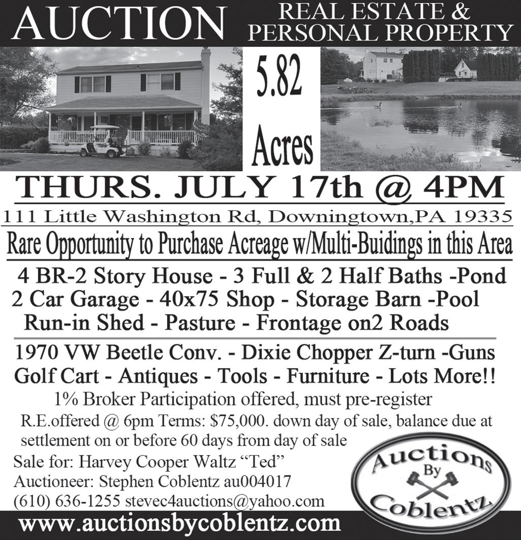 TERMS: Real Estate-10% Down at auction. Bal by 8/29/25. Buyer pays all realty transfer tax.