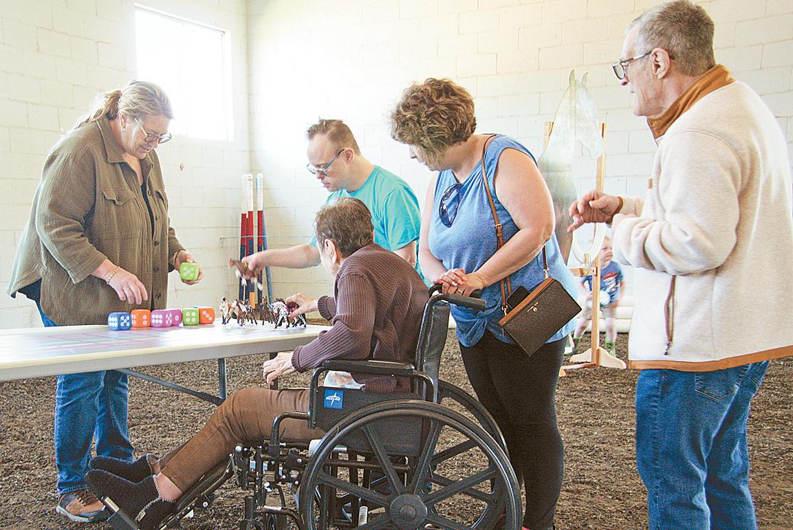 Greystone Manor board member Kathy Phillips (far left) played a “Horse Race” game with visitors at the open house.