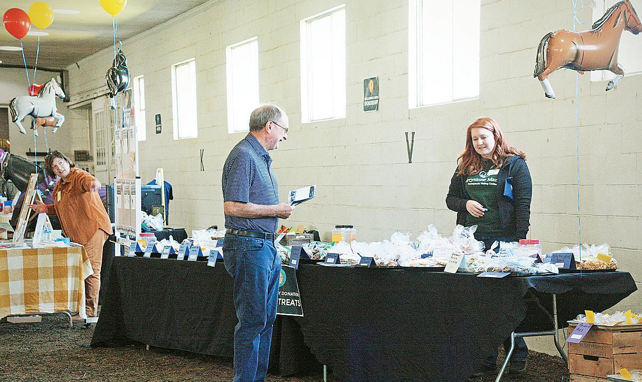 Board members Drew Hostetter (left) and Erin Dragann admired items from the bake sale.