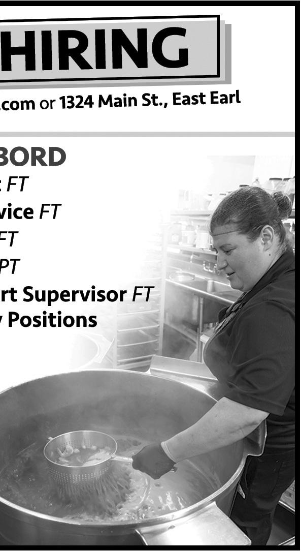 PENNYSAVER - Pequea Valley Edition - August 9, 2023- 15 townlively.com R089781 5004 Horseshoe Pike Honey Brook, PA 19344 610-273-3724 Mon.-Fri. 6am-6pm, Sat. 7am-3pm • Chain Saws • Trimmers • Blowers • Pressure Washers/Sprayers • Hedge Trimmers • Lawn Mowers • Snow Blowers honeybrookhardware.com Small Engine Service & Repair R098452 Come And Join Us! We are seeking an energetic individual to be part of our team! 568 Blue Rock Road New Holland, PA 17557 (717)327-9973 info@smartsolarsolutionsllc.net Solar/Electrical and Heat Pump Installation Requirements: Valid PA Driver’s License, Capable of lifting 75 lbs., willing to learn something new everyday. No experience, we will train you! Electrical or HVAC experience a plus. NOWHIRING NOWHIRING Part-Time & Full-Time Benefits - 401(k) - Flexible Hours R097639 Call 717-806-0991 or e-mail to apply customerservice@caulercontainers.com CDL Driver, Diesel Mechanic & Loaders START IMMEDIATELY R098439 Part-Time Driver Mornings & Evenings To transport employees to Mount Joy and back. Must have reliable vehicle. Apply to: Dutch Country Builders 717-471-5609 R098436 R098665 For