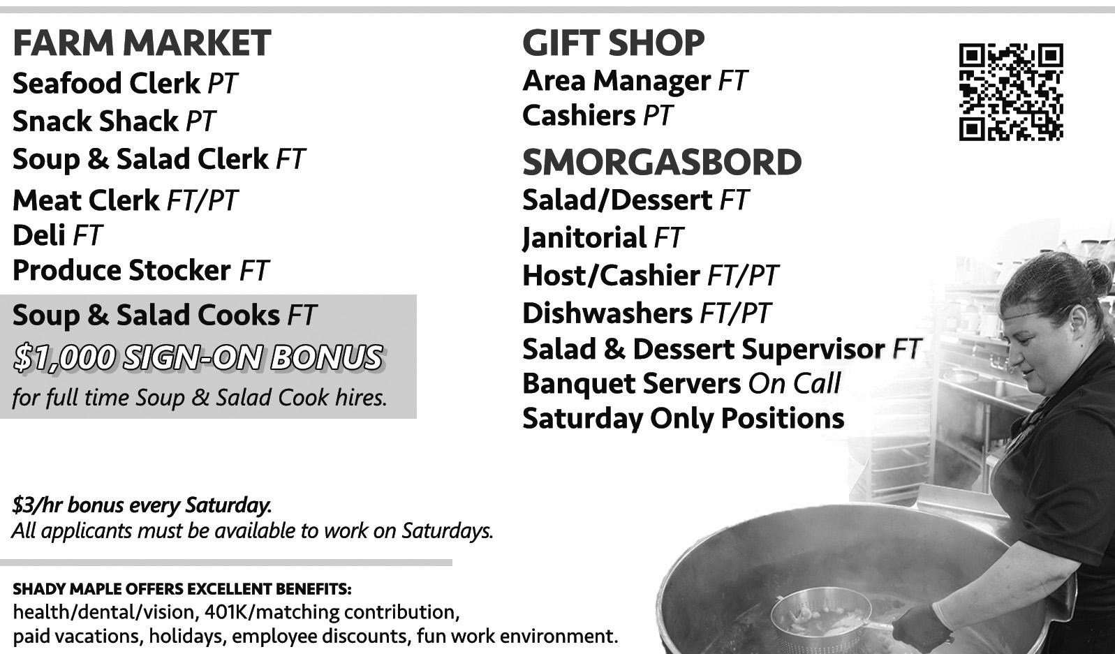 Penny Saver Editor Engle Printing & Publishing Co., Inc. P.O. Box 500 Mount Joy, PA 17552 or submit by email to news@engleonline.com circulation@engleonline.com PEQUEA VALLEY EDITION Submit Classified Ads at: townlively.com 1-800-428-4211 classifieds@engleonline.com Classified Advertising Deadlines By phone 10 A.M. Thursday Online Noon Wednesday (Except Early Holiday Deadlines) CREEKSIDE FOODS 339 Spring Garden Rd., Kinzers, PA 17535 STORE HOURS MON.-THURS. 7:30 A.M.- 5 P.M. FRI. 7:30 A.M.- 7 P.M.; SAT. 8 A.M.- 4 P.M. R099716 CREEKSIDE FOODS Prices Good September 11th-September 25th, 2023 or While Supply Lasts. Colombian Whole Bean Coffee 38 Oz. $5.99 6/38 Oz. In A Case $32.00 Organic Free Range Chicken Stock 32 Oz. 99¢ 12/32 Oz. In A Case $11.50 Organic Peanut Butter Poppers Cereal 10 Oz. Box 2/$1.00 12 Boxes In A Case $5.75 Case Regular Marshmallows 24 Oz. Bag 79¢ NEW SHIPMENT Beef Lit’l Smokies 12 Oz. Packs LARGE SHIPMENT Cool Whip 16 Oz. Special In-Store Pricing Wedding Orders Should Be Placed 2 Weeks Before Wedding Date Located on White Oak Rd., 1 Mile W. of Rt. 372 or 21⁄2 Miles E. of Rt. 896 R099608 Tomatoes • Cantaloupe • Honey Watermelon • Cheese • Yogurt Apple Cider $5.50/Gallon Grown Here on Our Farm GRAPES - PEARS PLUMS - APPLES For Fresh Eating Smokehouse Apples • Ginger Gold • Golden Supreme Gala • Honeycrisp • Cortland • McIntosh Monday-Friday 7am-7pm, Sat. 7am-5pm For More Information On Varieties Available & Prices Call 610-593-8610 Leave Message or Call between 7pm-7:30pm Mix & Match Out of Bins $10.85 Half Bushel 4 or more $7.85 Ginger Gold Special $6.00 Half Bushel • Auto • Home • Business • Farm • Life • Health Local Service That Makes a Difference Affordable Insurance (717) 442-9234 • www.beilerinsurance.com 5406 Lincoln Hwy., P.O. Box 189, Gap, PA 17527 R098369 R097944 625 Robert Fulton Highway Quarryville, PA 17566 quarryville.com Christ-centered living Come & go as you please 3 meals/day, housekeeping, & laundry Help with daily activities Comfort & security Personal Care Tailored to YOUR Needs Call 717-786-5215 to learn how we can personalize services for you! Live as independently as possible in our Long Apartments Antiques & Auction News Featuring Local Auctions & Antique Shops! Pick it up at your favorite antique shop or read it online at antiquesandauctionnews.net Seniors citizens post meeting