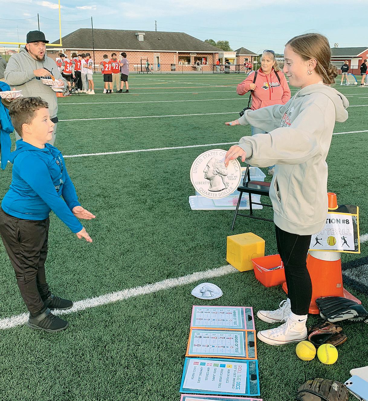 Doors opened at 5:45 p.m. After registering, young students could choose to visit a number of stations manned by members of PVHS sports teams. Station 10 was surrounded by football players in their Braves shirts, while softball players at station 8 offered to do arm circles with a student as part of a
