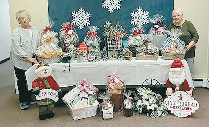 gift baskets gathered and prepared by the United Women of Faith. The themed gift baskets, which come in all sizes and shapes, include gift cards, home accessories and certificates for services and experiences, all donated by local businesses.