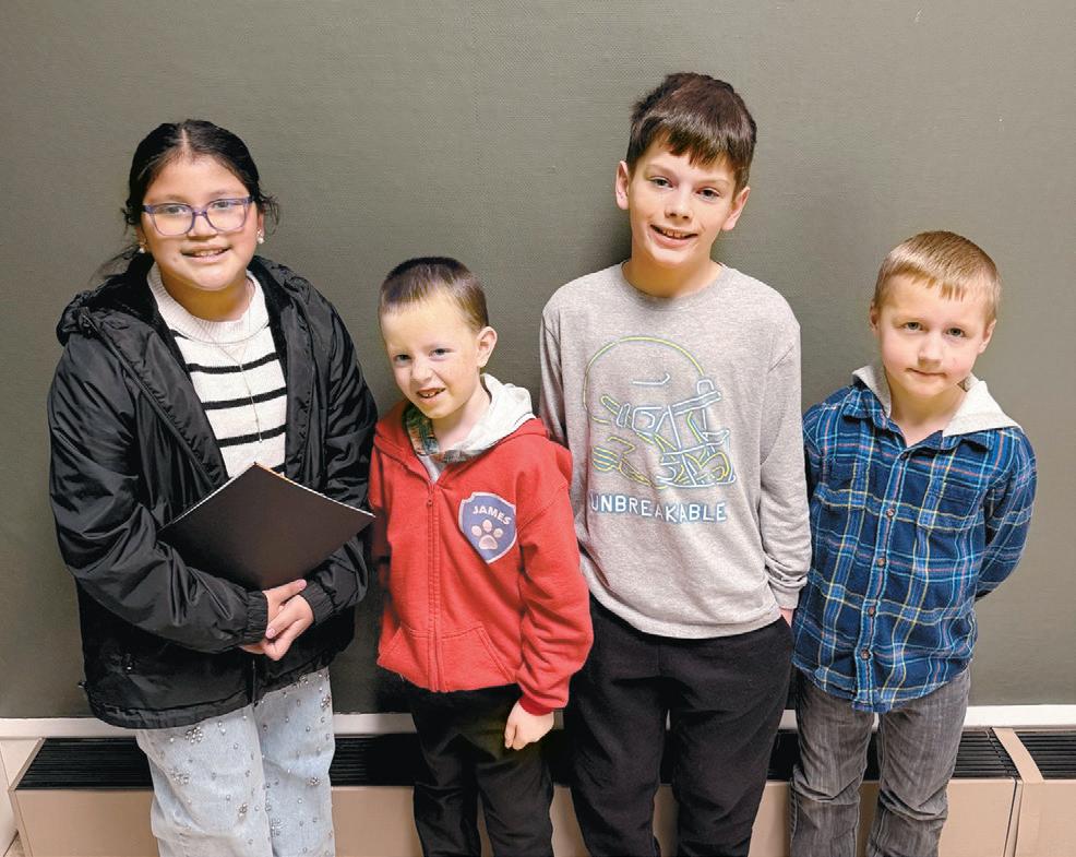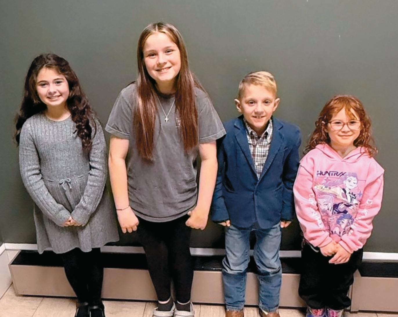 The January elementary school Students of the Month were recognized at the Jan. 5 Solanco School Board meeting. They are (from left) Charlotte Donahey, grade five, Quarryville Elementary School; Sadie Grego, grade five, Providence Elementary School; Dawson Holzhauer, grade two, Clermont Elementary School; and Kaylee Winters, grade one, Bart-Colerain Elementary School.