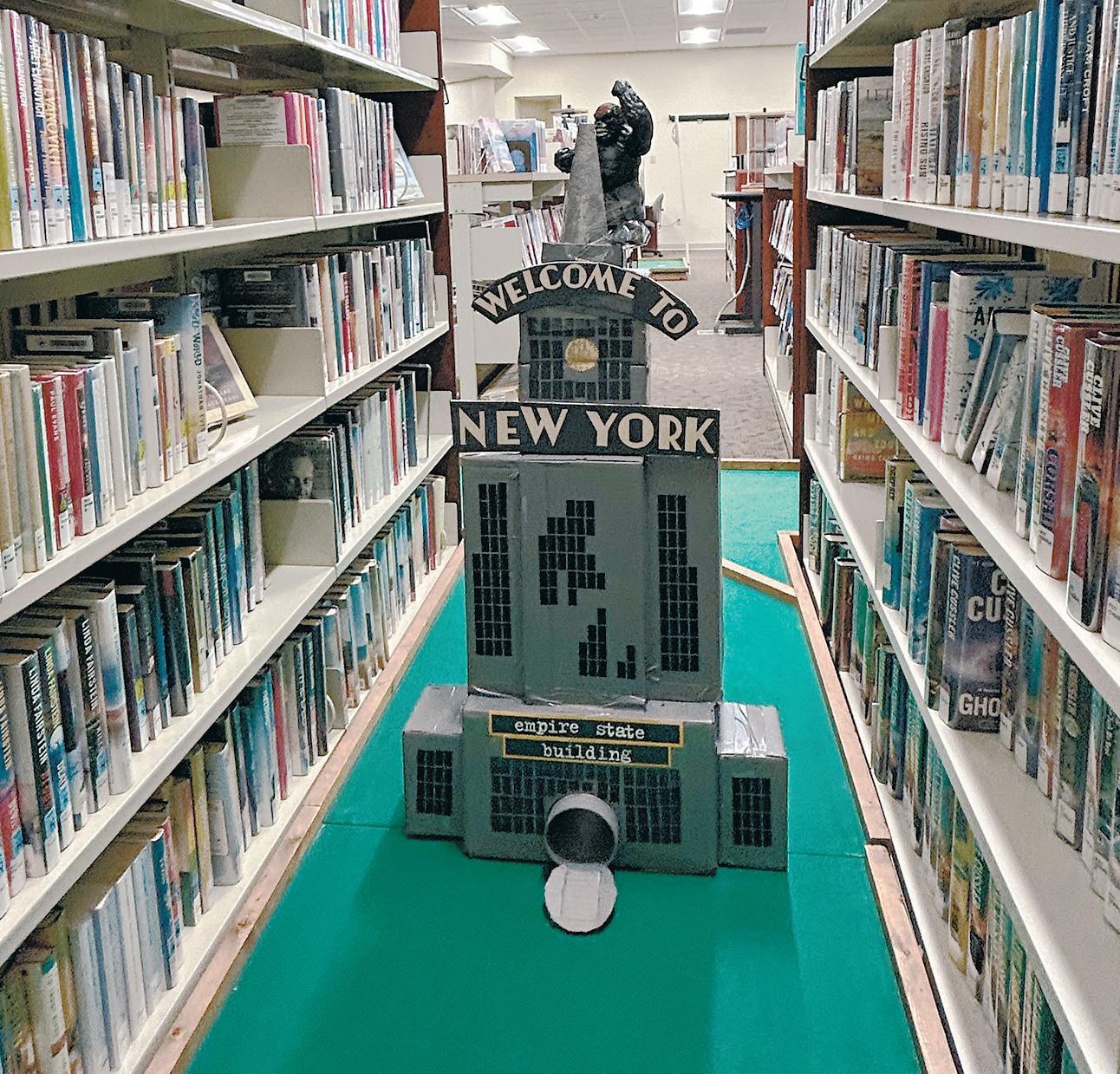 another library, and it fits because we have them custom-measured and designed to fit around our bookshelves. We store it in between events every year and then bring it back out, but it is a fully functioning 18-hole mini golf course. It did start with less than 18 holes and has grown over the years to be a full 18 holes now.”