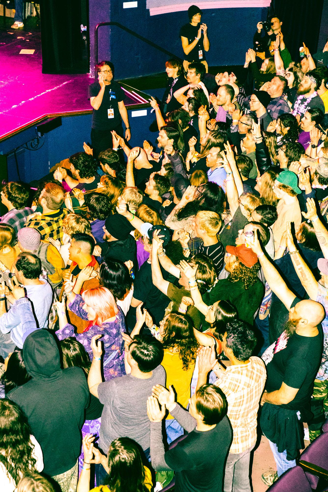 Lo-fi artist George Clanton seems teleported from the set of an early '2000s MTV Unplugged concert, with spiky acid-bleach hair and synth-laden hooks. Clanton brought a hypnotic light show, a devoted fanbase, and fully laid into the character of George Clanton—some sort of secret member of a boy band shot to superstardom. Clanton rendered The Englert unrecognizable with lasers and animated flashing smiley faces galore.