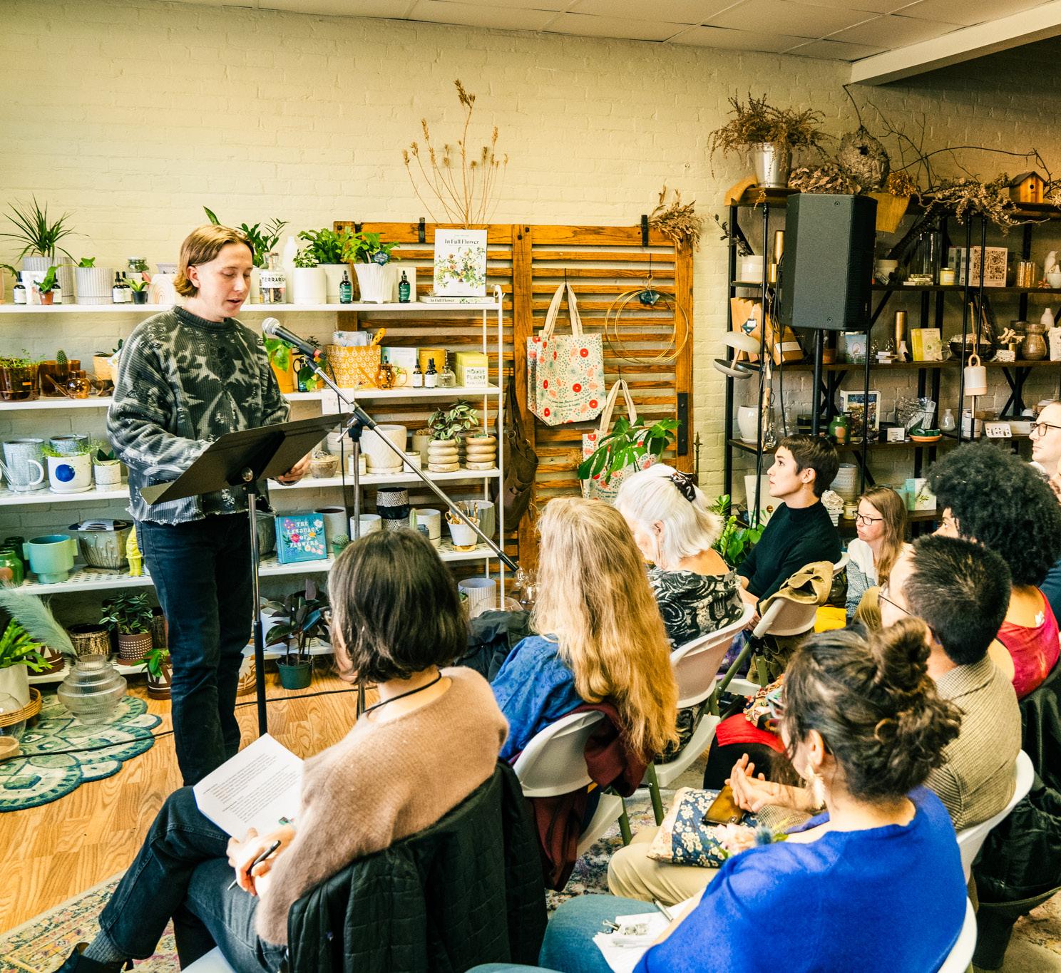 Just as Mission Creek curated national literary talent for the fest, we're also aware of the distinct privilege Iowa City has to house many renowned writers within the Iowa Writers' Workshop. The Lit Walk provides writers the opportunity to read their work in both a vibrant plant shop and among racks of clothing, rushing from location to location in true festival fashion.