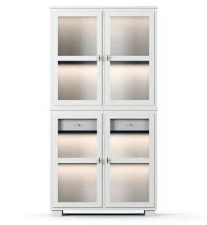 Information Alla möbler med glasdörrar har integrerad dimbar belysning, fjärrkontroll ingår.