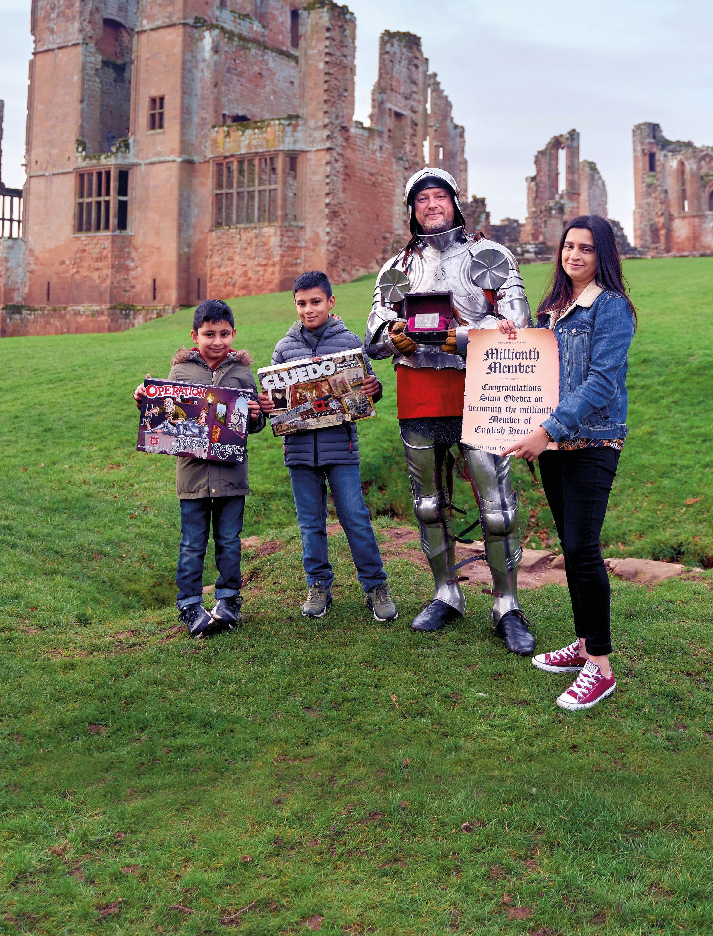 We recently welcomed our millionth Member – and marked the occasion in a suitably historic fashion. Sima Odedra, who joined English Heritage after a visit to Tintagel Castle in Cornwall, was awarded by our medieval knight with a lifetime membership during a trip to Kenilworth Castle and Elizabethan Garden in Warwickshire. Her children, Aiden and Ryan, were also given English Heritage Operation and Cluedo board games. Since joining, they have already been to numerous properties around the country, from Stonehenge to Stott Park Bobbin Mill.